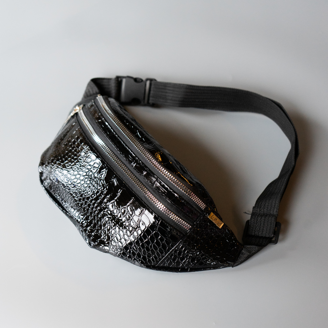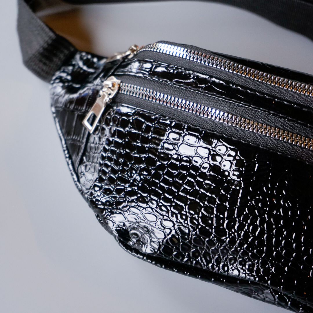 Cool mini bumbag Bæltetaske i imiteret sort CROC-look.