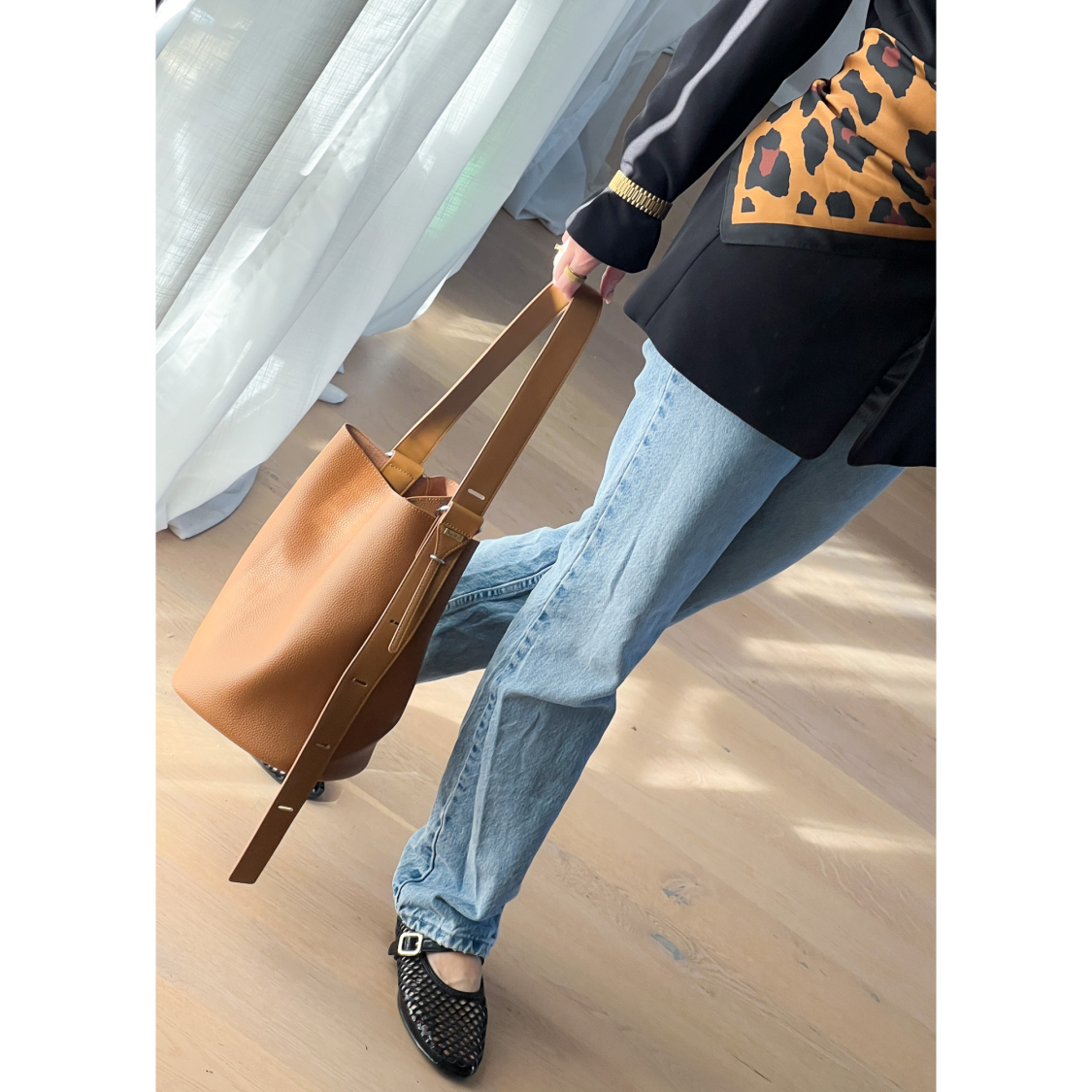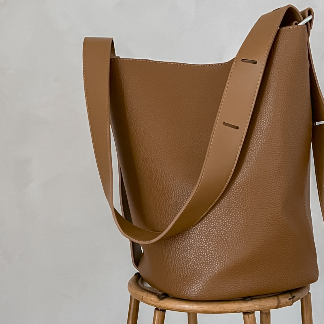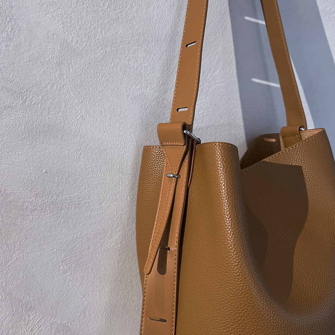 Skøn og rummelig bucket taske med justerbar rem.