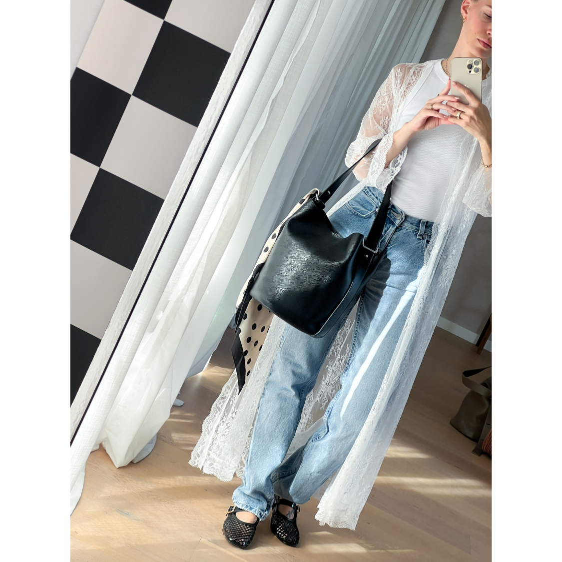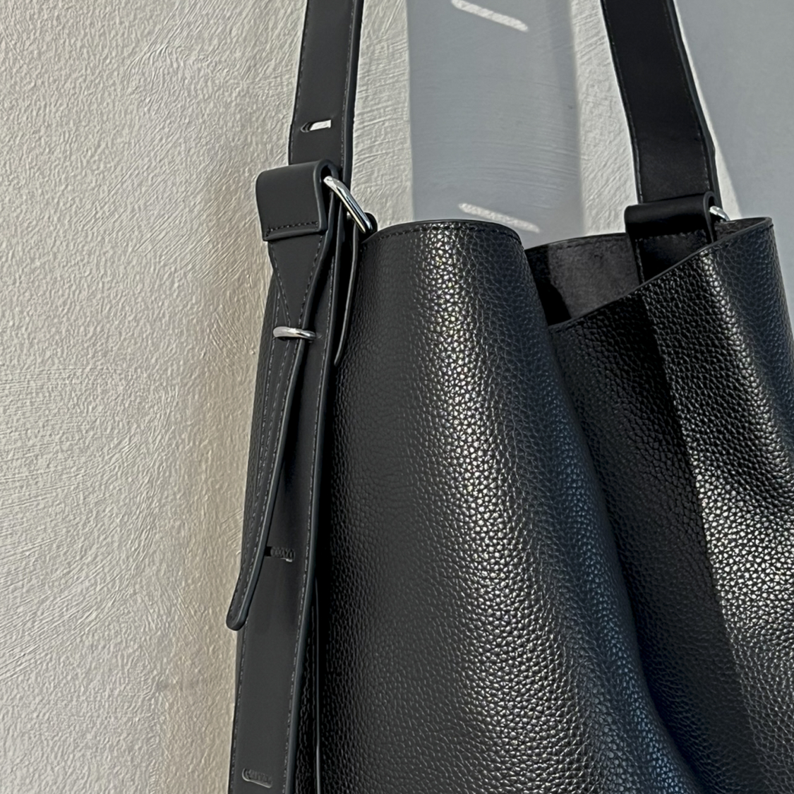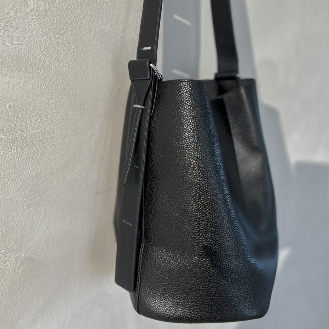 Skøn og rummelig bucket taske med justerbar rem.