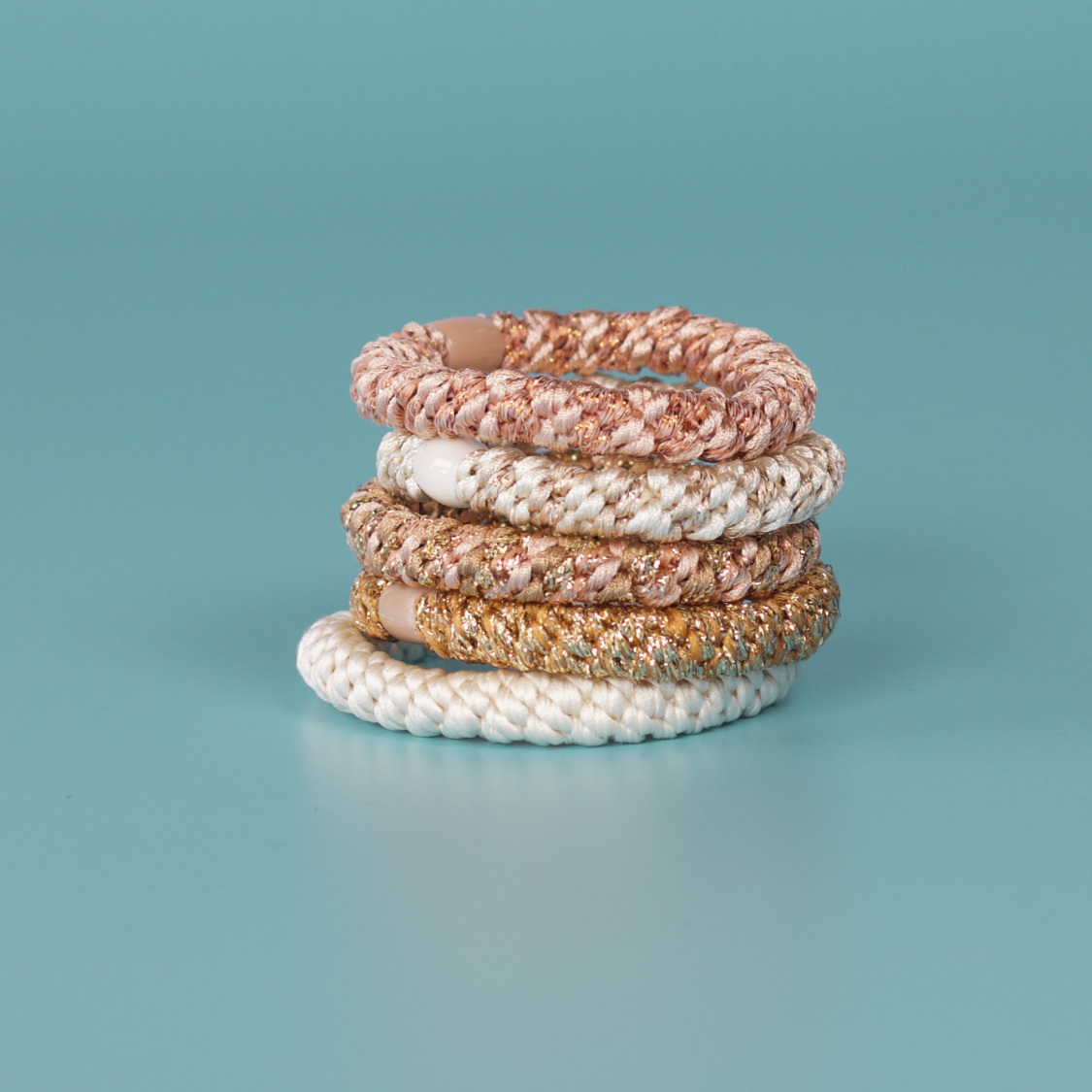 Forsiden / Håraccessories / Hårelastikker / Pony elastik pakke i Creme