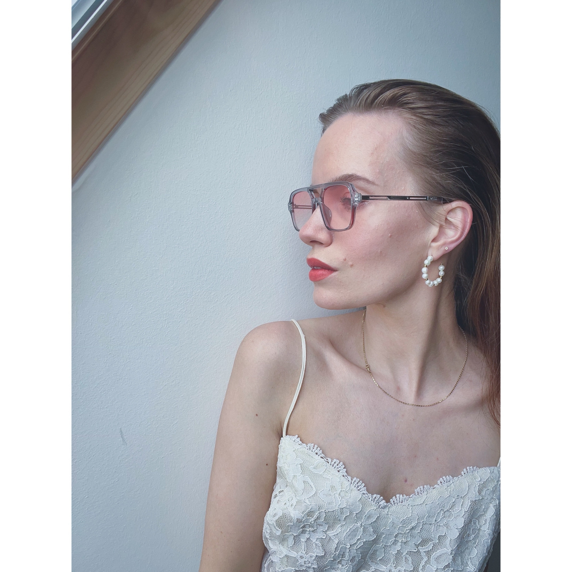 Cool solbriller med rosa glas.