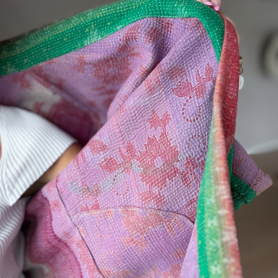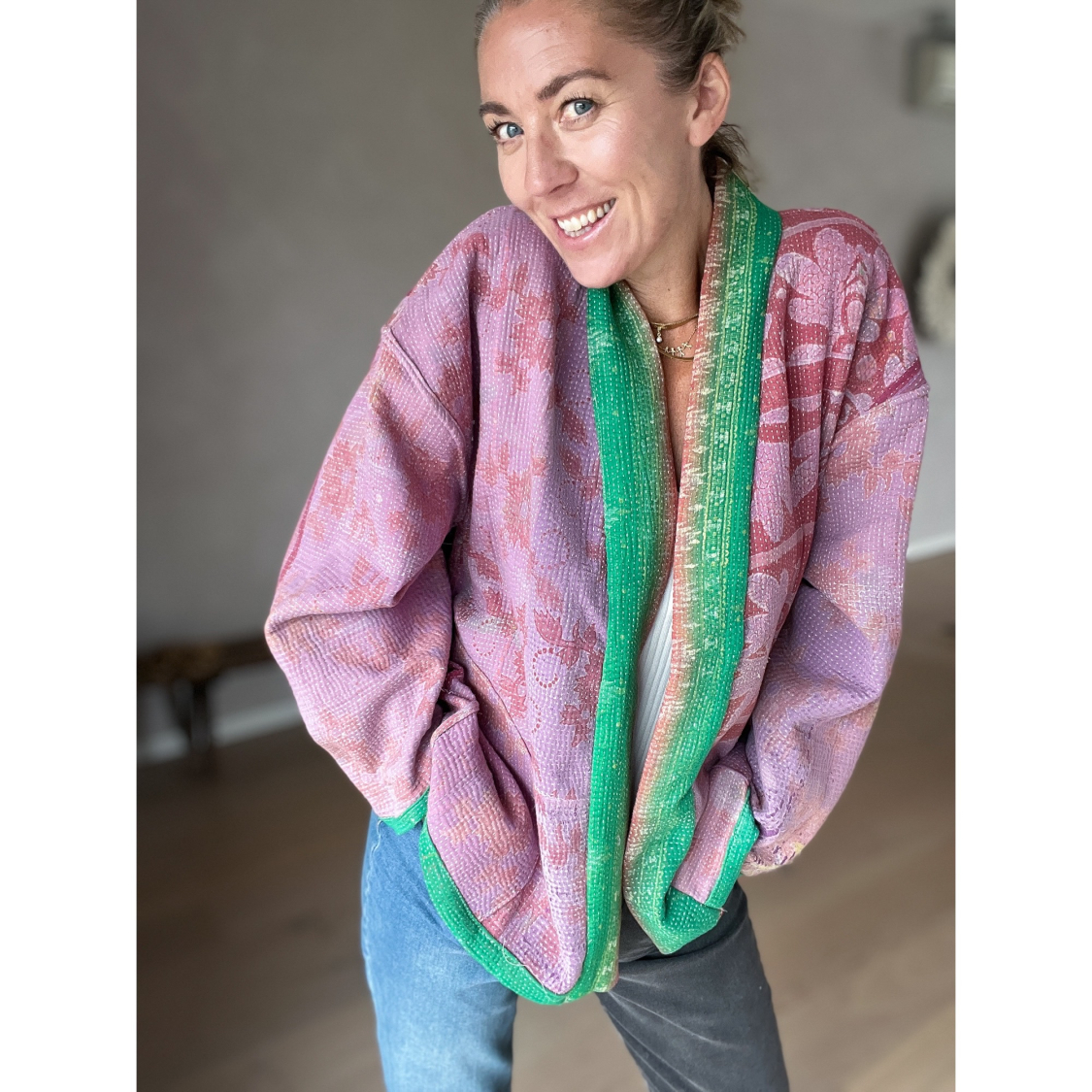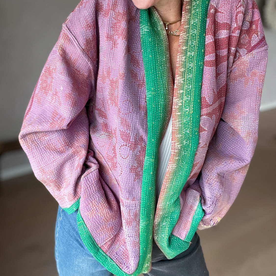 Anina Kantha Quilt Jakke no 03 i lilla og grøn