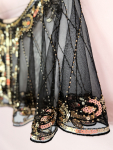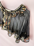 Kate kappe i sort fra LÉ MOSCH, fin sort og guldfarvet pyntekappe til dit festlook, yndig og let skulderdækning til festen,