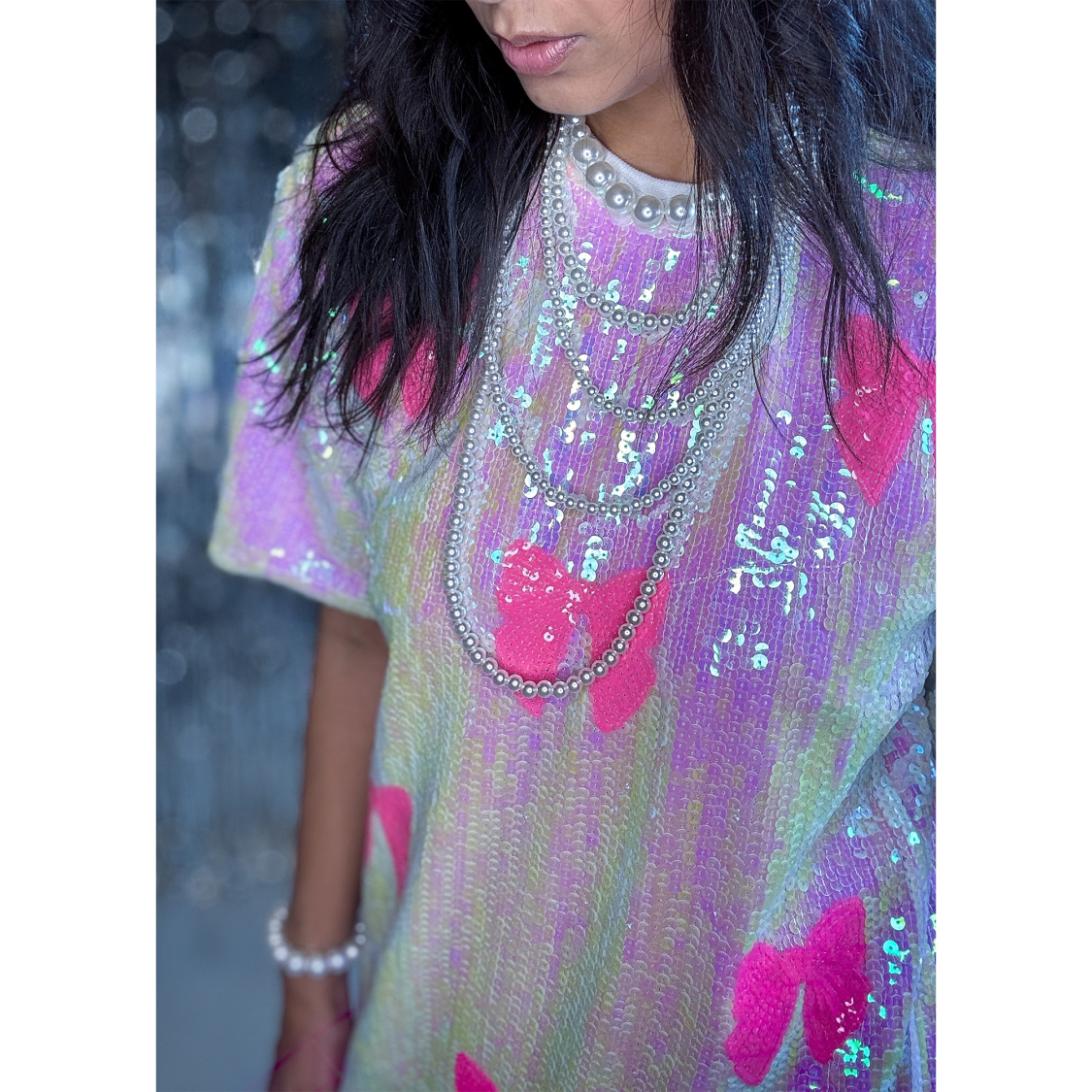 ONESIZE - Skøn T-shirt med pailletter. Se mål længere nede.