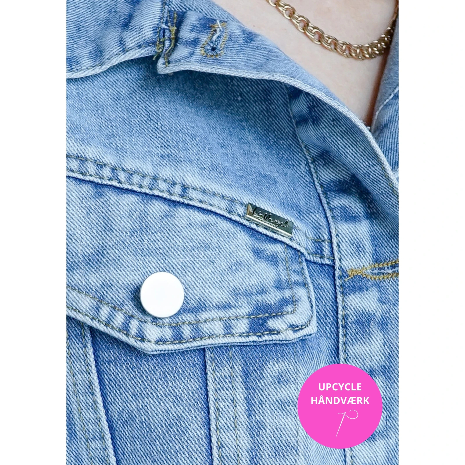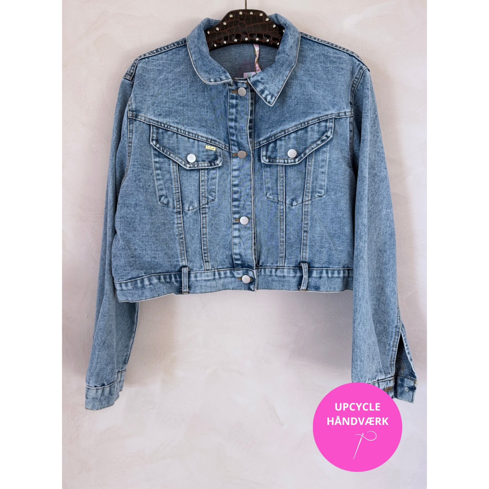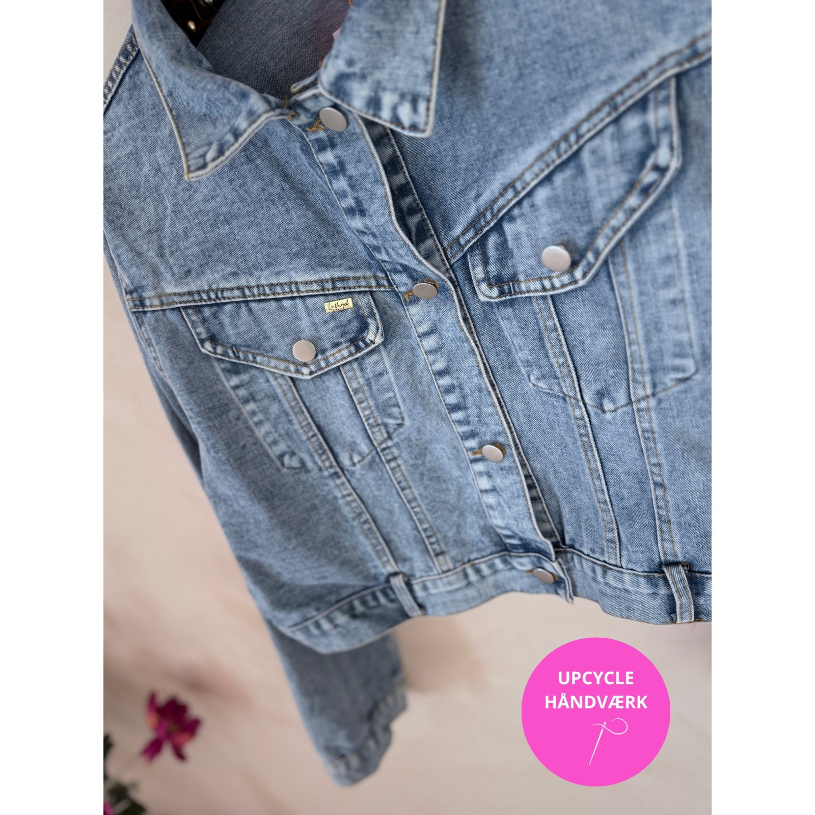 Jakken er upcyclet og har fået nyt liv gennem kærlig syning. - Ikke af professionelle syersker på en fabrik men af vores egne selvlærte menneskehænder med passion for unikke detaljer. Det er kreativt håndværk og ikke maskin-perfektion. Perfekt uperfekt - ligesom alt det smukkeste i livet.