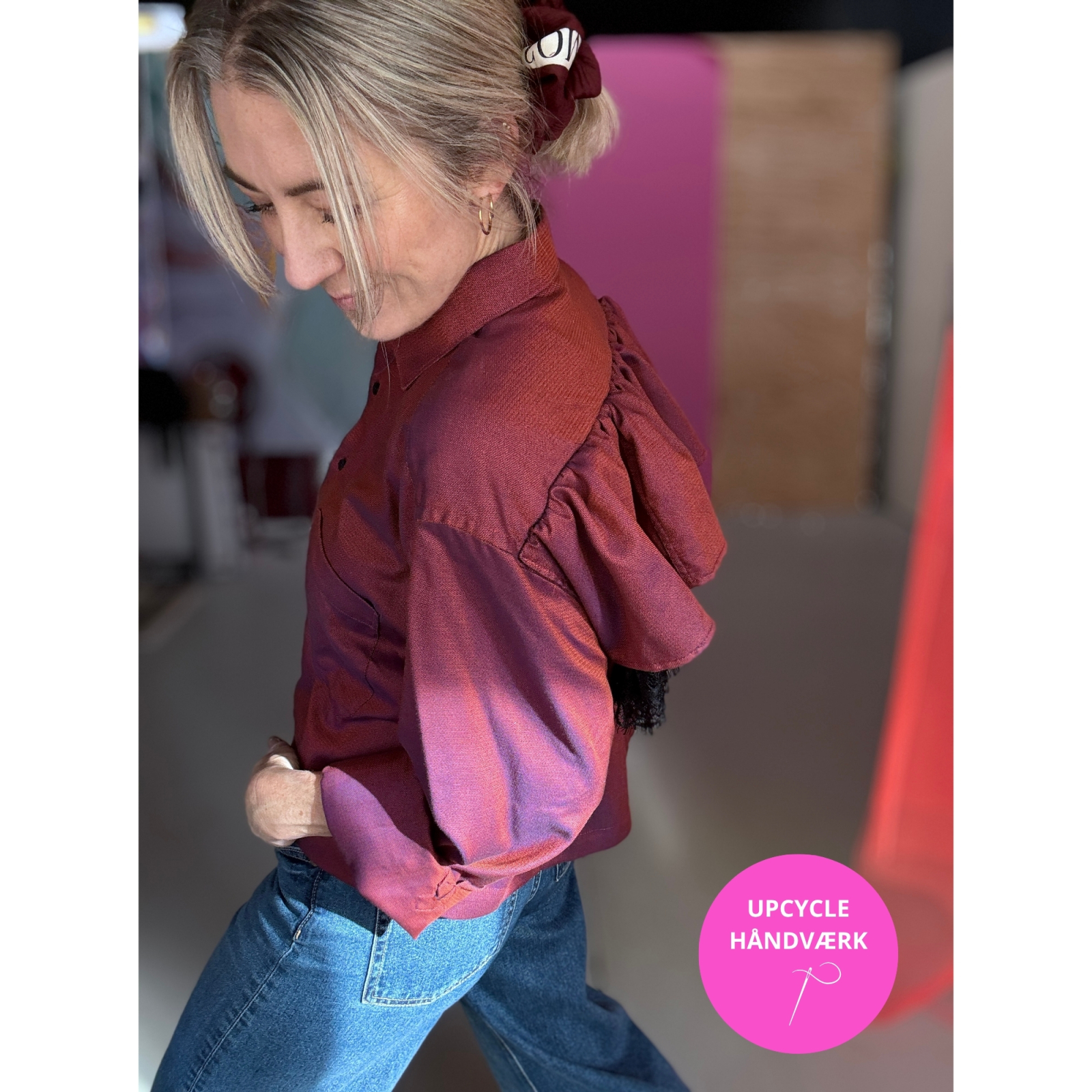 Varenr.: 3254726 | GTIN 5714441013462Unik skjorte med flæse bagpå - ONE SIZE. Skjorten er upcyclet og har fået nyt liv gennem kærlig syning