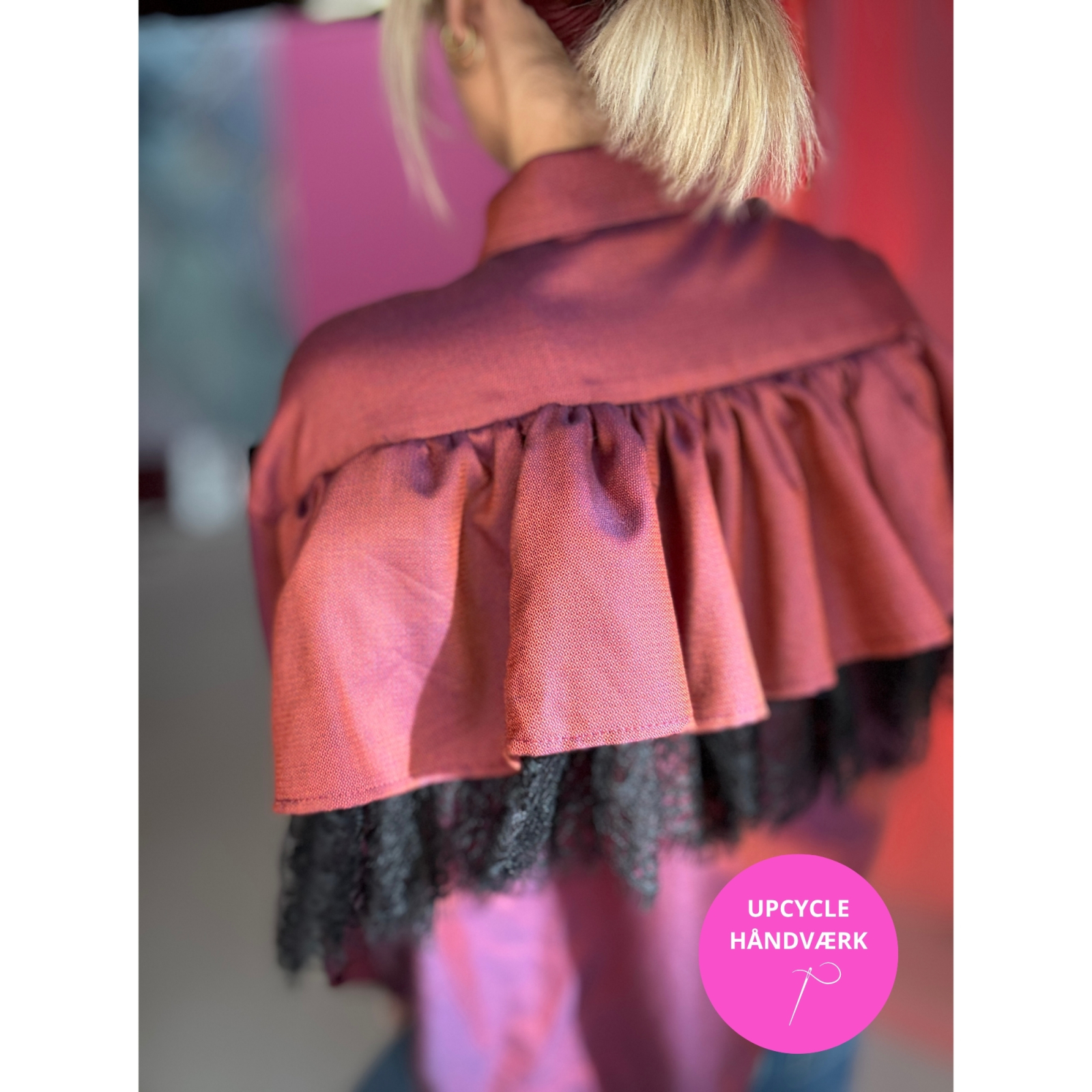 Her har du en virkelig fin skjorte med cool flæser og tyl. En super cool og unik upcyclet kort skjorte.