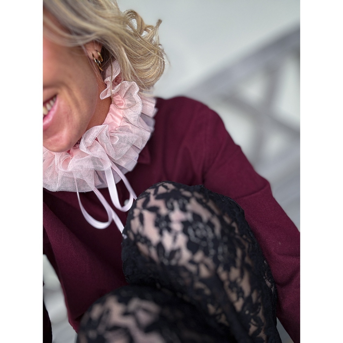 Forsiden / TØJ / Tøj / Krave med flæser i Rosa