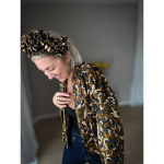 Håndlavet Maria Kimono i sort og nougat farvet print, syet af upcyclede materialer, med trekvarte ærmer og bælte fra le mosch.