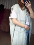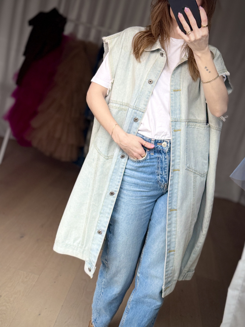 Vega oversize vest fra LÉ MOSCH, stor vest i denim look, tynd denim vest i løst fit,