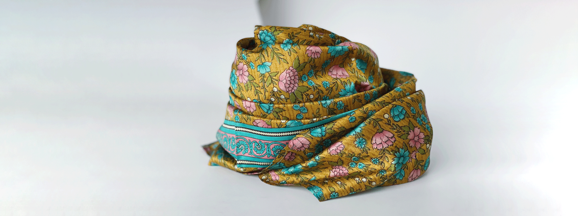 Nitin tørklæde fra LE MOSCH: Bliv forelsket i dette bæredygtige og vintage-inspirerede unika tørklæde i silke, der tilfører et eksklusivt touch til enhver garderobe.