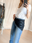 Vintage Vibes kort denim jakke med blonder no 080 fra LÉ MOSCH, kort lys denimjakke med et twist, anderledes og lækker kort denimjakke med blonder,