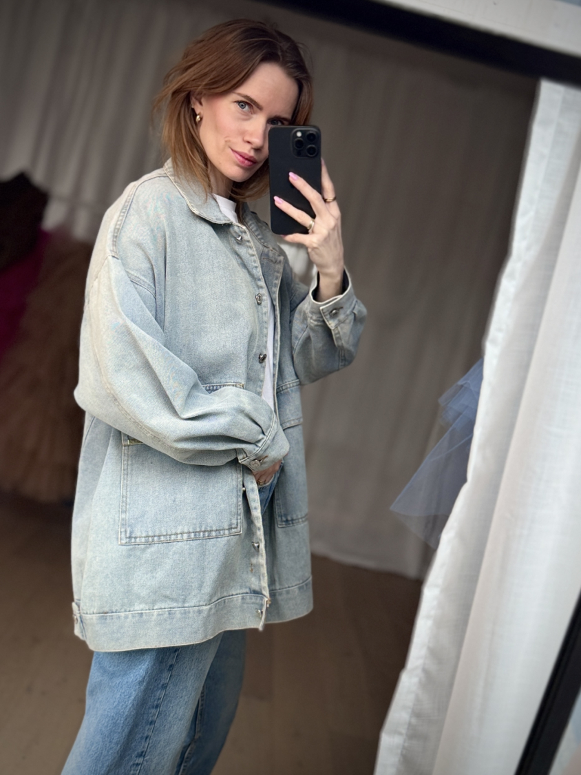 Nella lang denim look jakke
