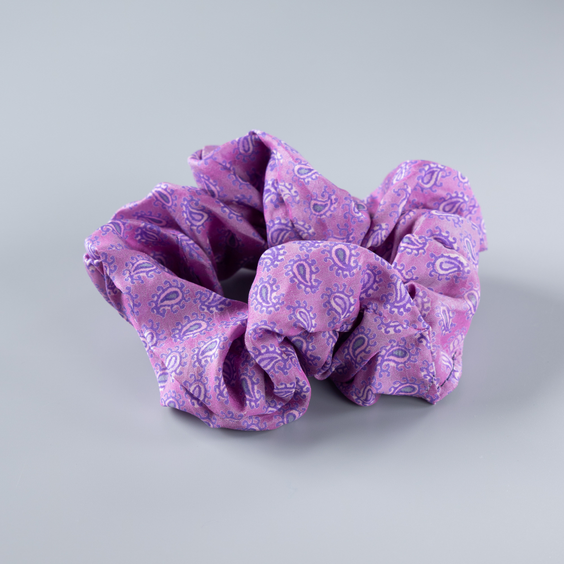 Unik og lækker silke scrunchie, produceret af genanvendte materialer fra vores kollektioner. Læs mere længere nede.