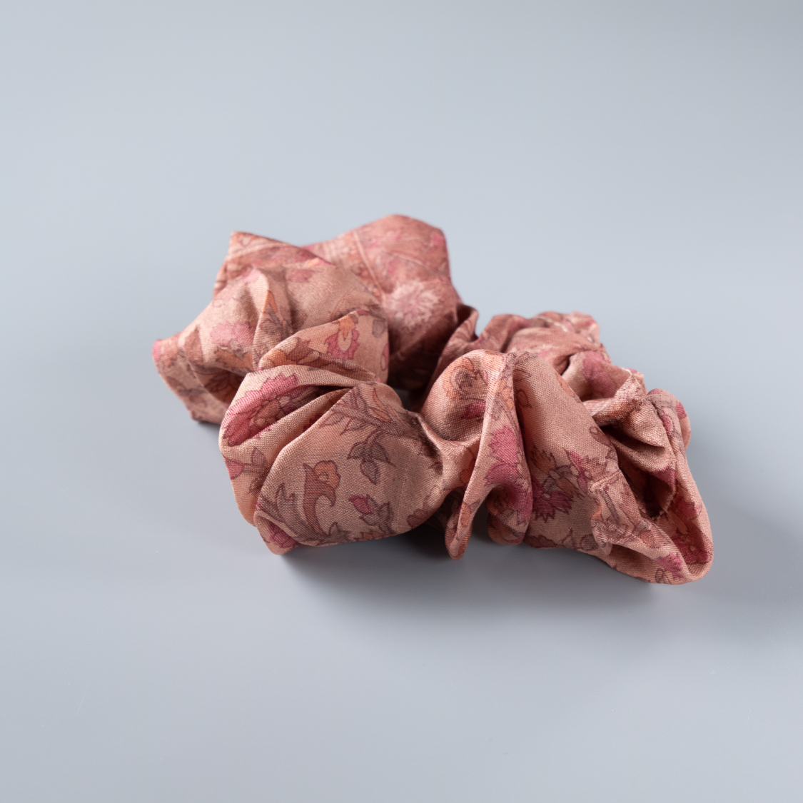 Unik og lækker silke scrunchie, produceret af genanvendte materialer fra vores kollektioner. Læs mere længere nede.