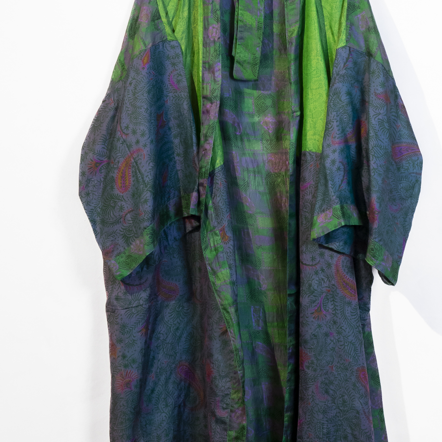 Monya Silkemix kimono no 1745 i Turkis. Håndlavet silkemix kimono i vintage sarier - kun 1 stk. af hver! Hurtig levering