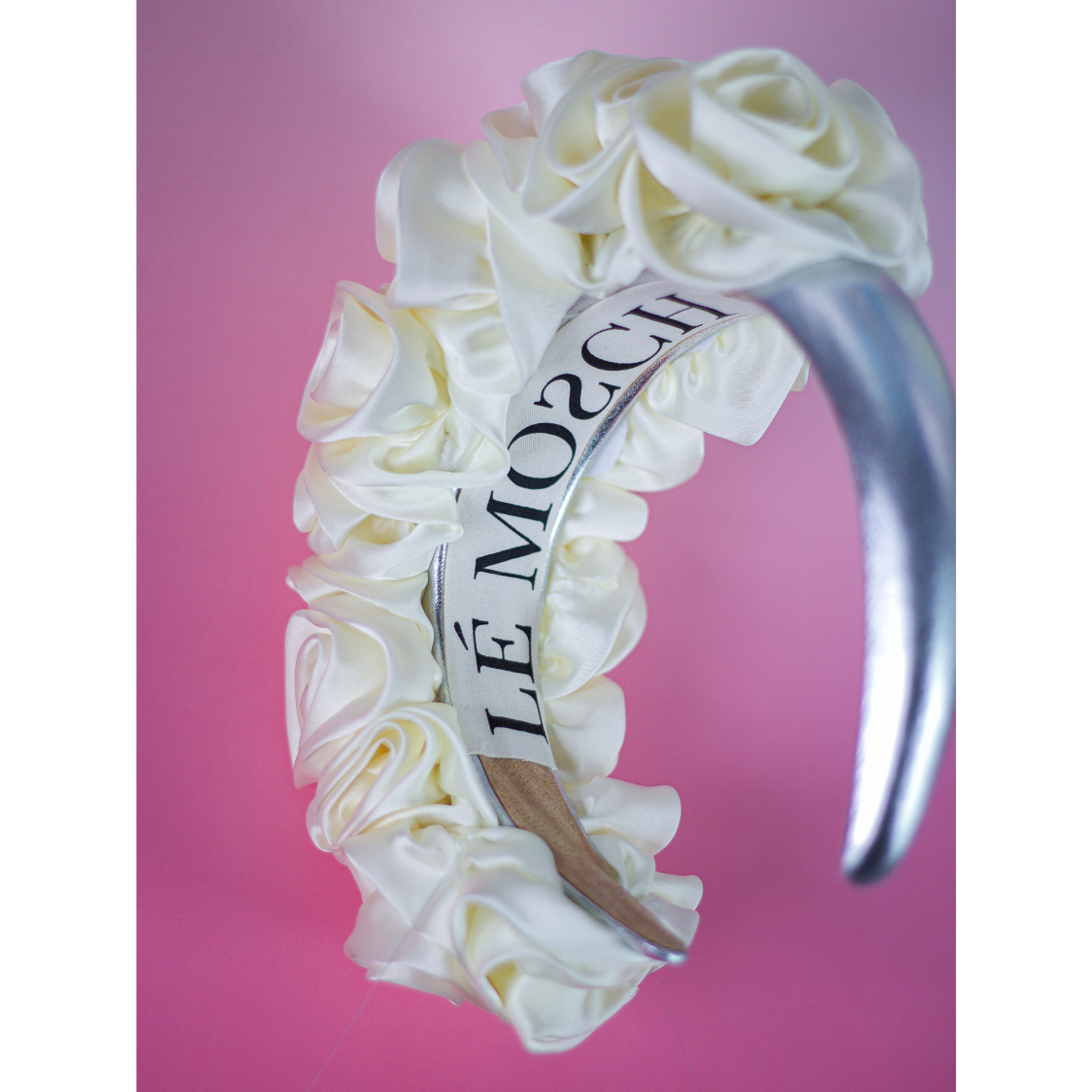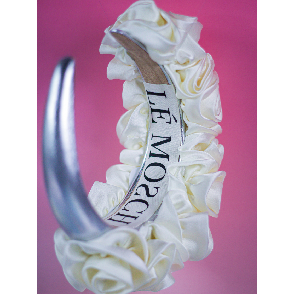 Mikki Hårbøjle med rosa satin fra LÉ MOSCH, smuk og skulpturel hårbøjle, fin og feminin rosa hårbøjle,