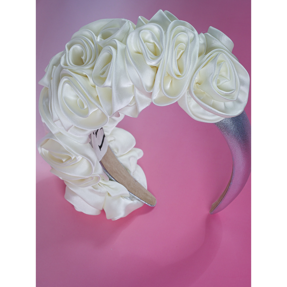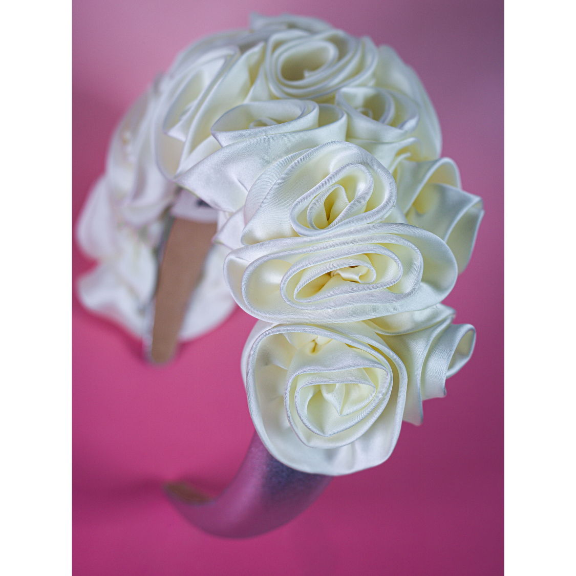 Håndlavet hårbøjle med smukke satin blomster. Perfekt til festlige lejlighed eller hverdag. Smuk og virkelig virkelig cool og anderledes. Vi har kun meget få stå af hårbøjlen, så du skal være hurtig hvis du vil nå og have fingre i den.