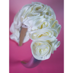 Stor blomsterkrone hårbøjle med sorte og off white satinblomster fra LÉ MOSCH,