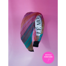 Silke stoffet på hårbøjlen har et fedt stribet-print. Hårbøjlen sørger for at tørklædet bliver hvor det skal. Vi har upcyclet et gammelt unika silke tørklæde, til den smukkeste hårbøjle. Vi garantere dig at du er 1:2 i verden med lige præcis denne hårbøjle - for der er kun 2 stk.