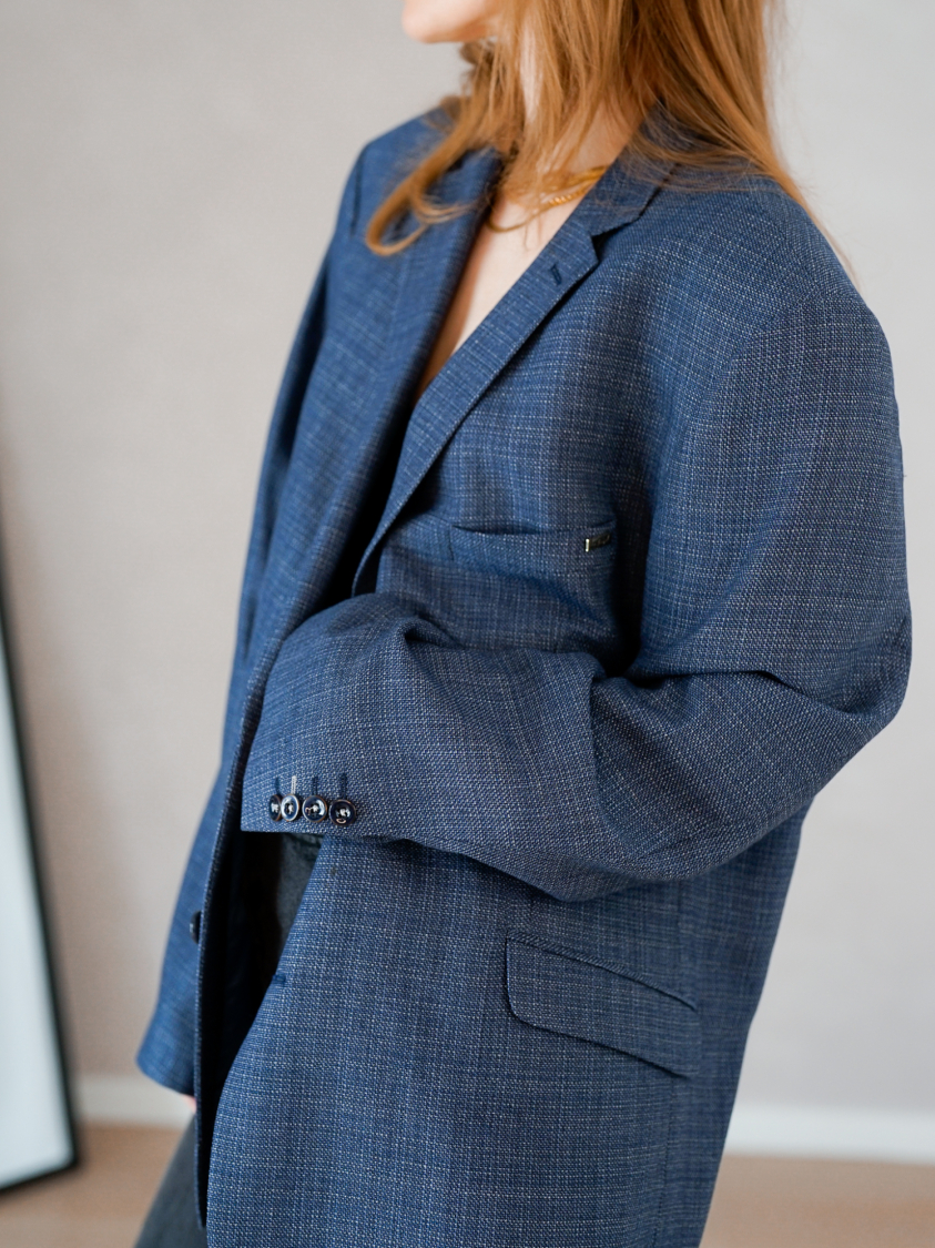 Vintage Vibes blå blazer – No 160 fra LÉ MOSCH, skøn og unik blå blazer, oversize og enkel blazer i mørkeblå,