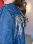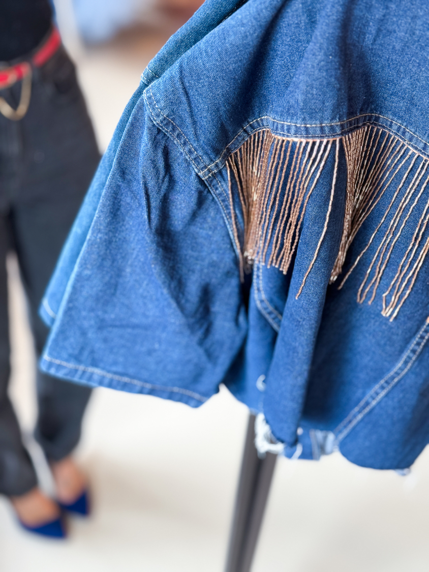 Vintage Vibes denim jakke med brune frynser – no. 106