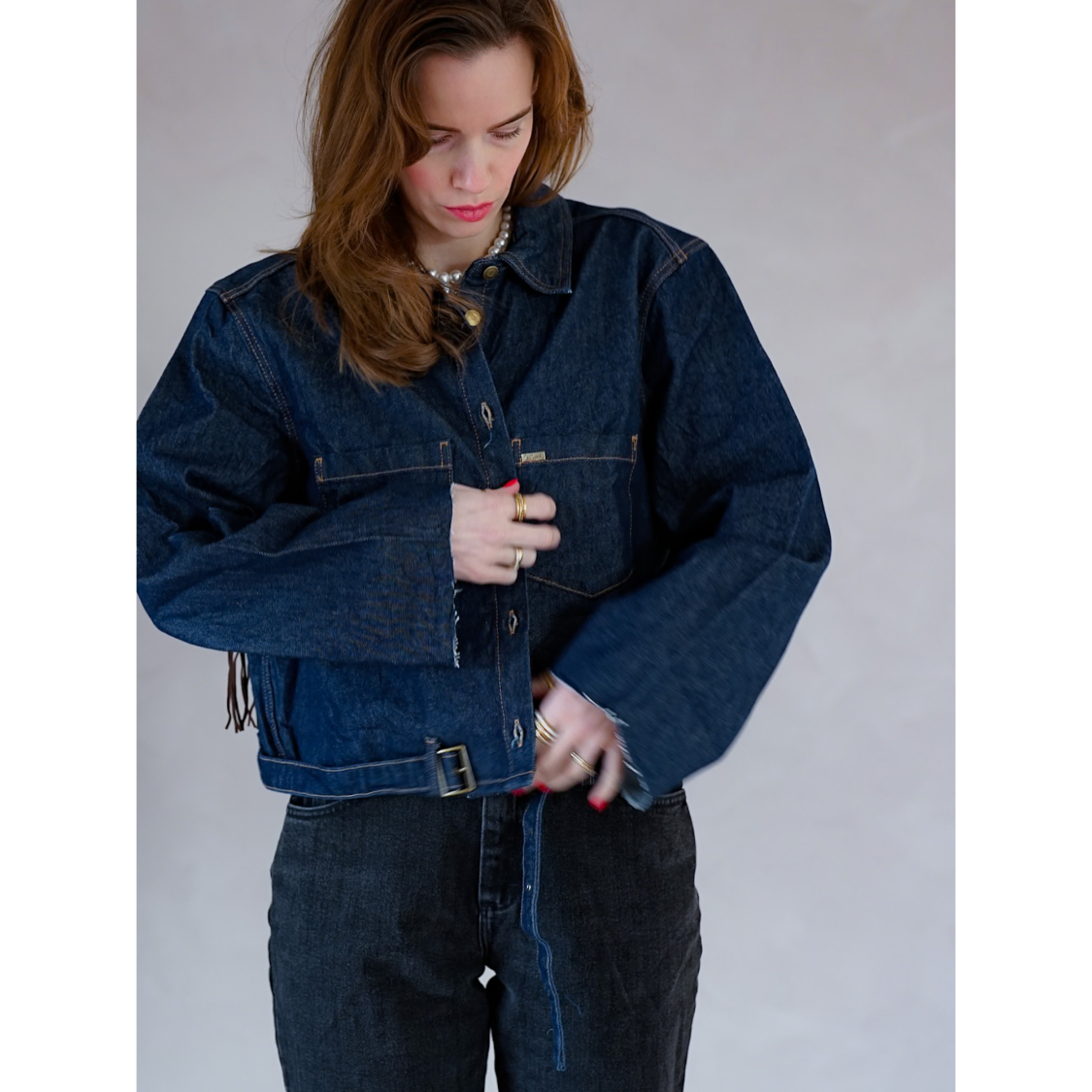Cool og anvendelig blå denim jakke med frynser.