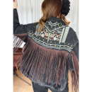 Vintage Vibes - broderet denim jakke med brune frynser – no. 077