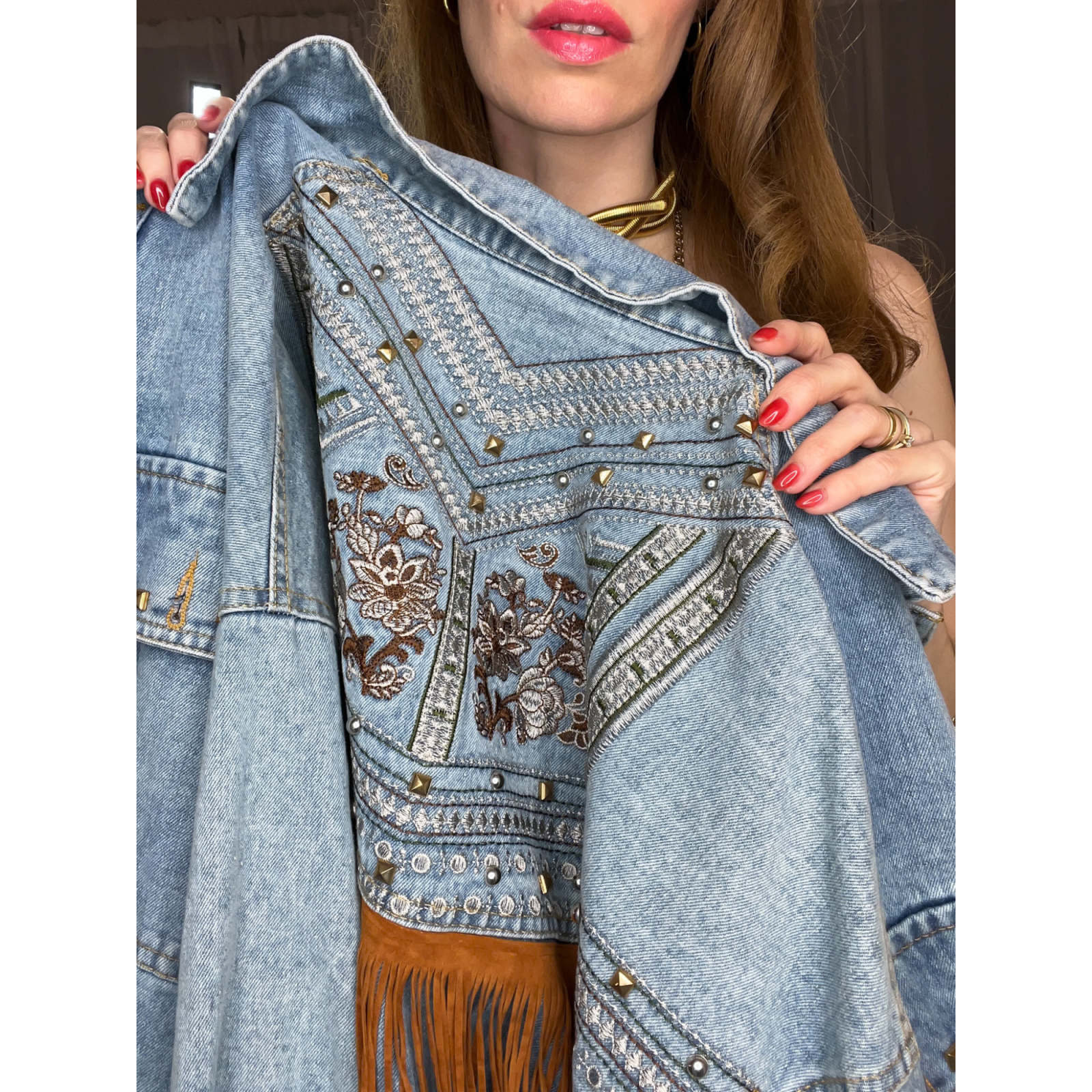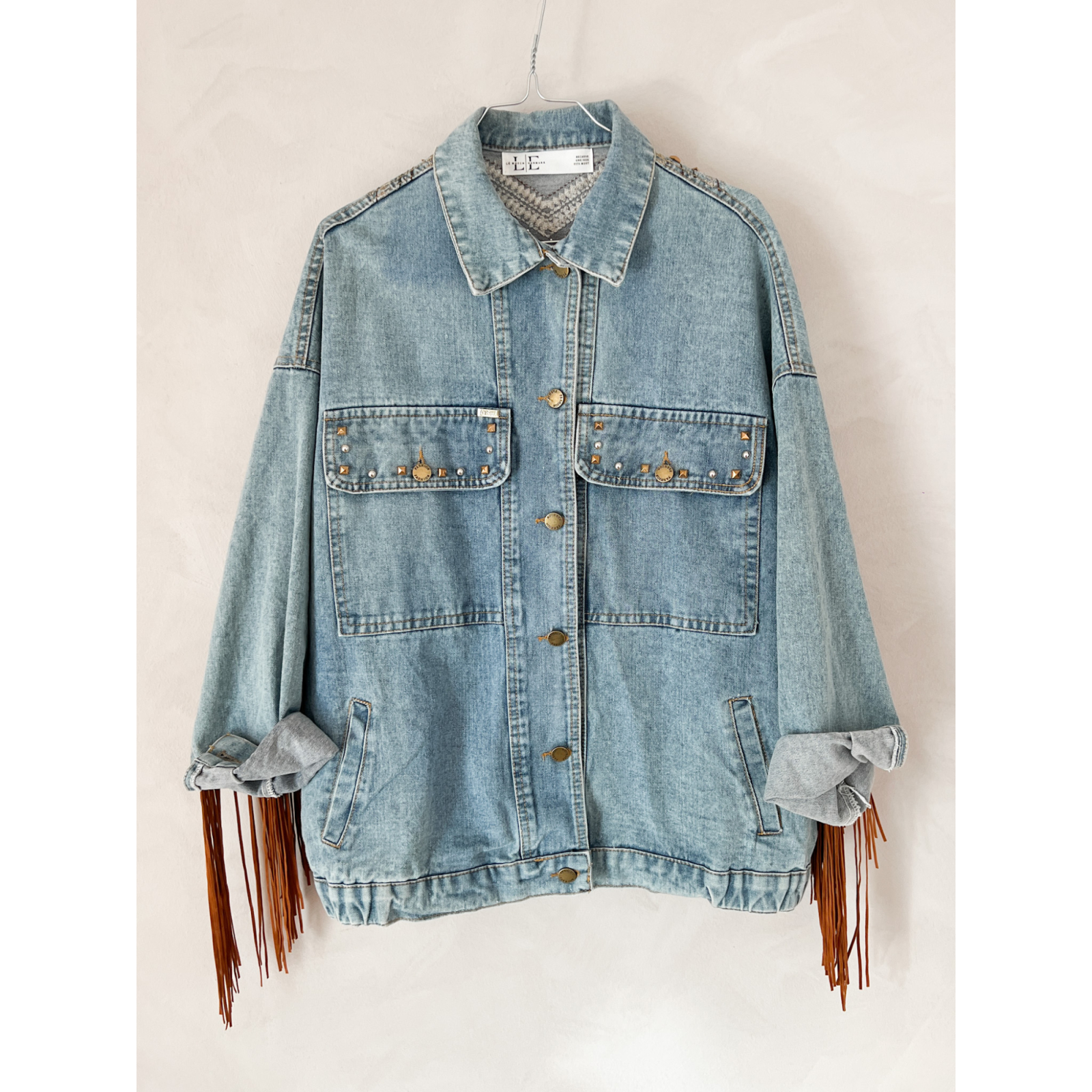 Varenr.: 3261572 | GTIN 5714441013684Skøn denim jakke med frynser, nitter og broderi.