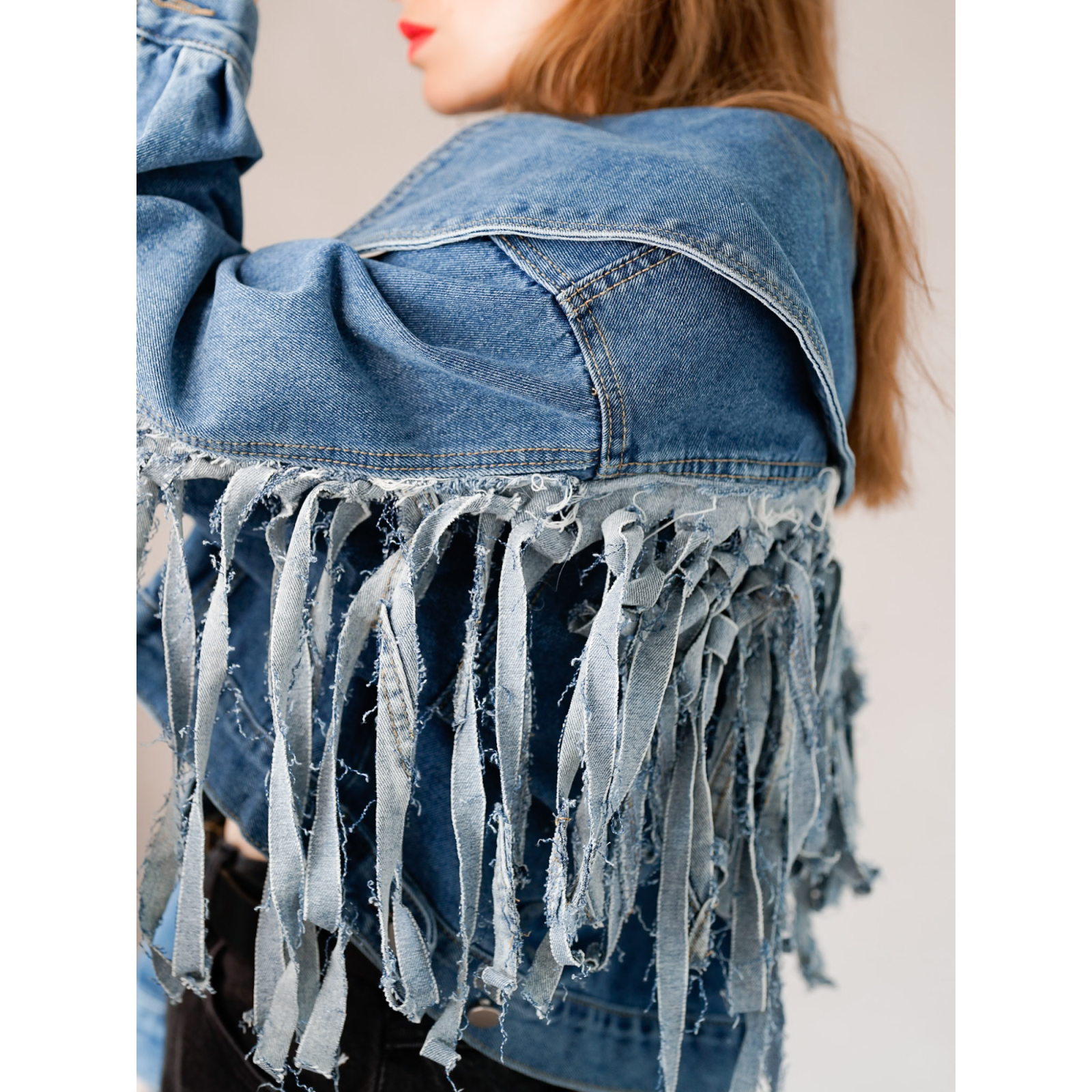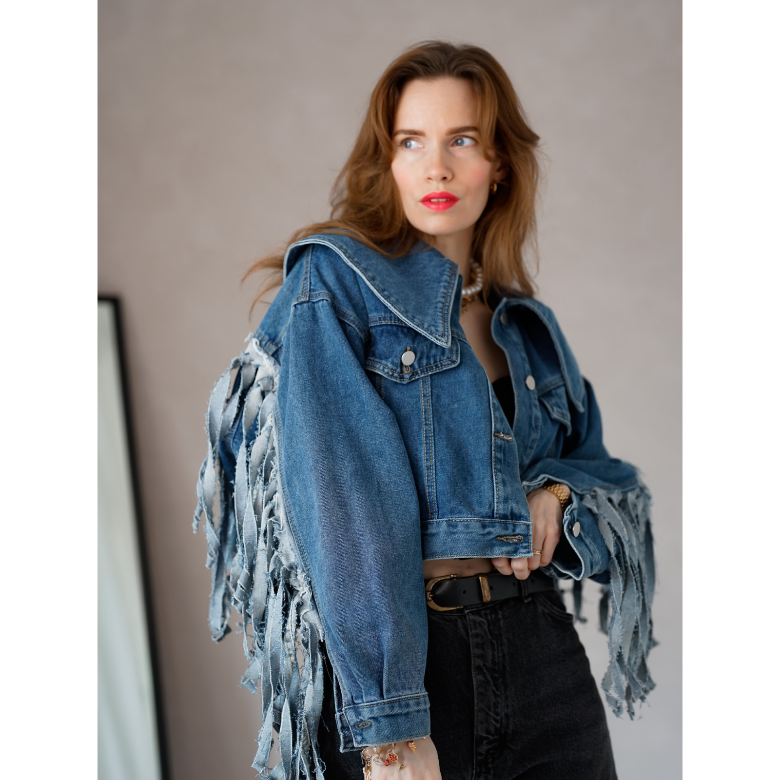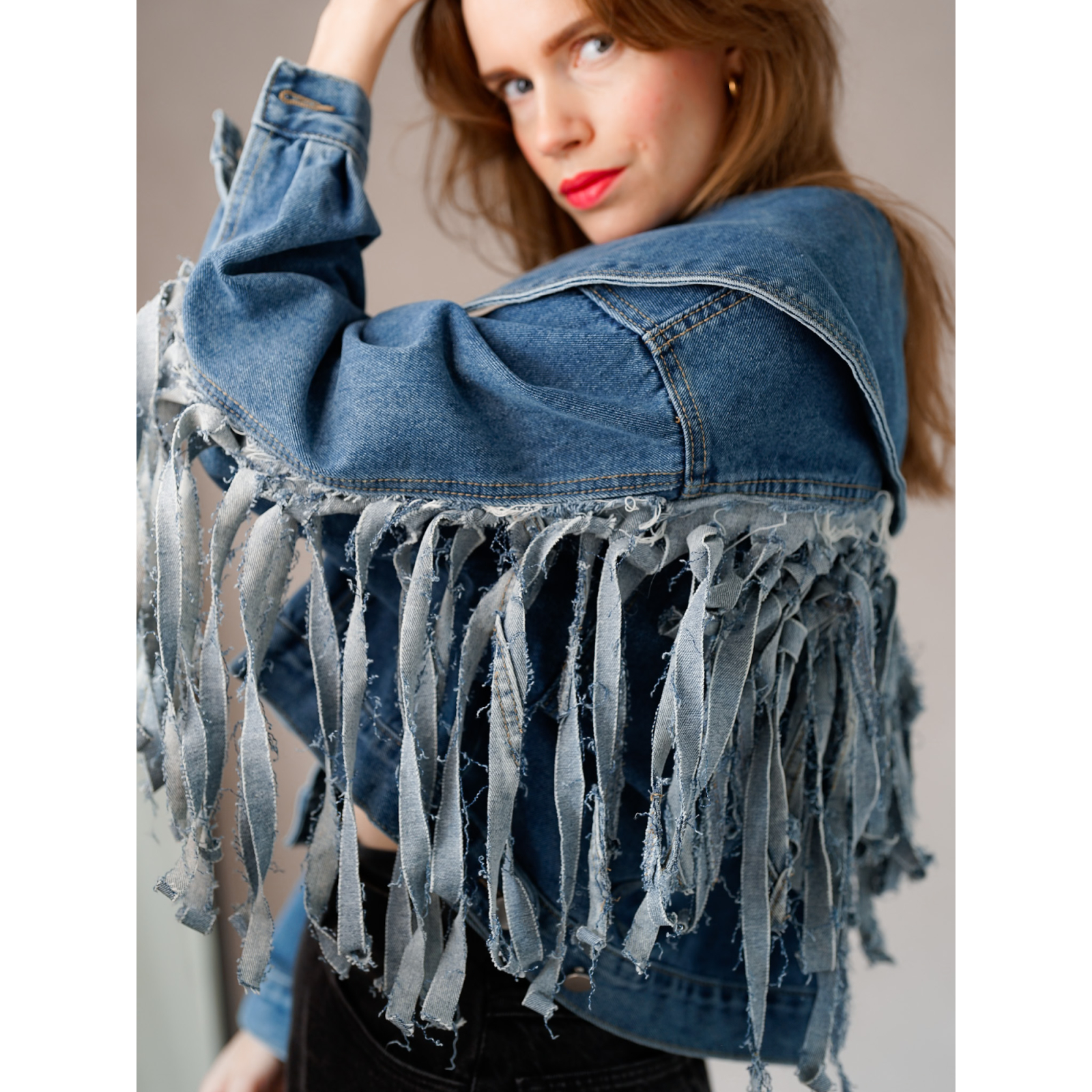 Vintage Vibes - kort denim jakke med fyldige denim frynser – no 112