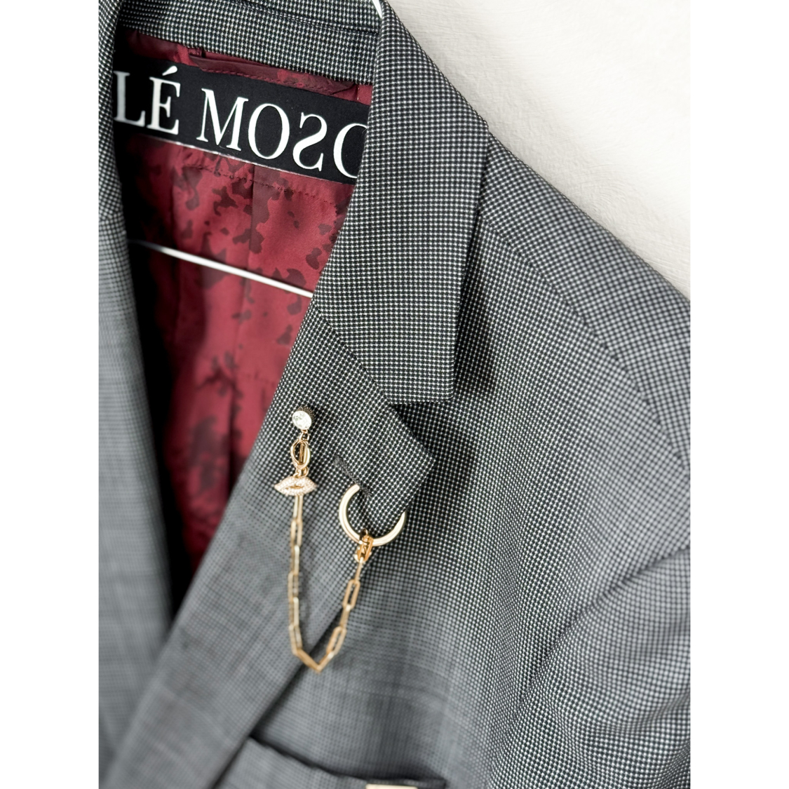 Vintage Vibes grå blazer med broche – No 157 fra LÉ MOSCH, skøn grå blazer med feminin brochekæde, unik og enkel grå oversize blazer,