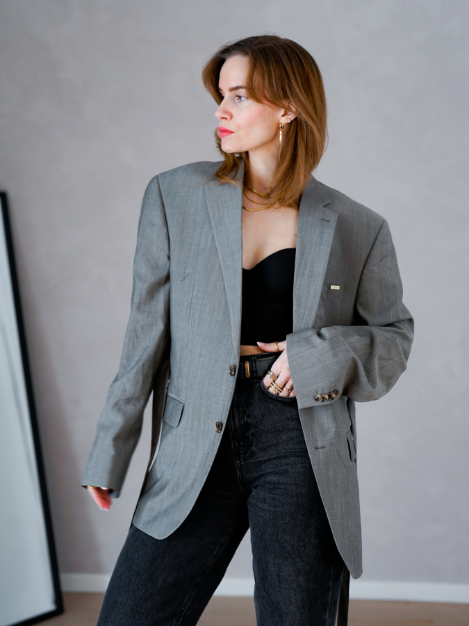 Vintage Vibes grå blazer med bælte – No 162