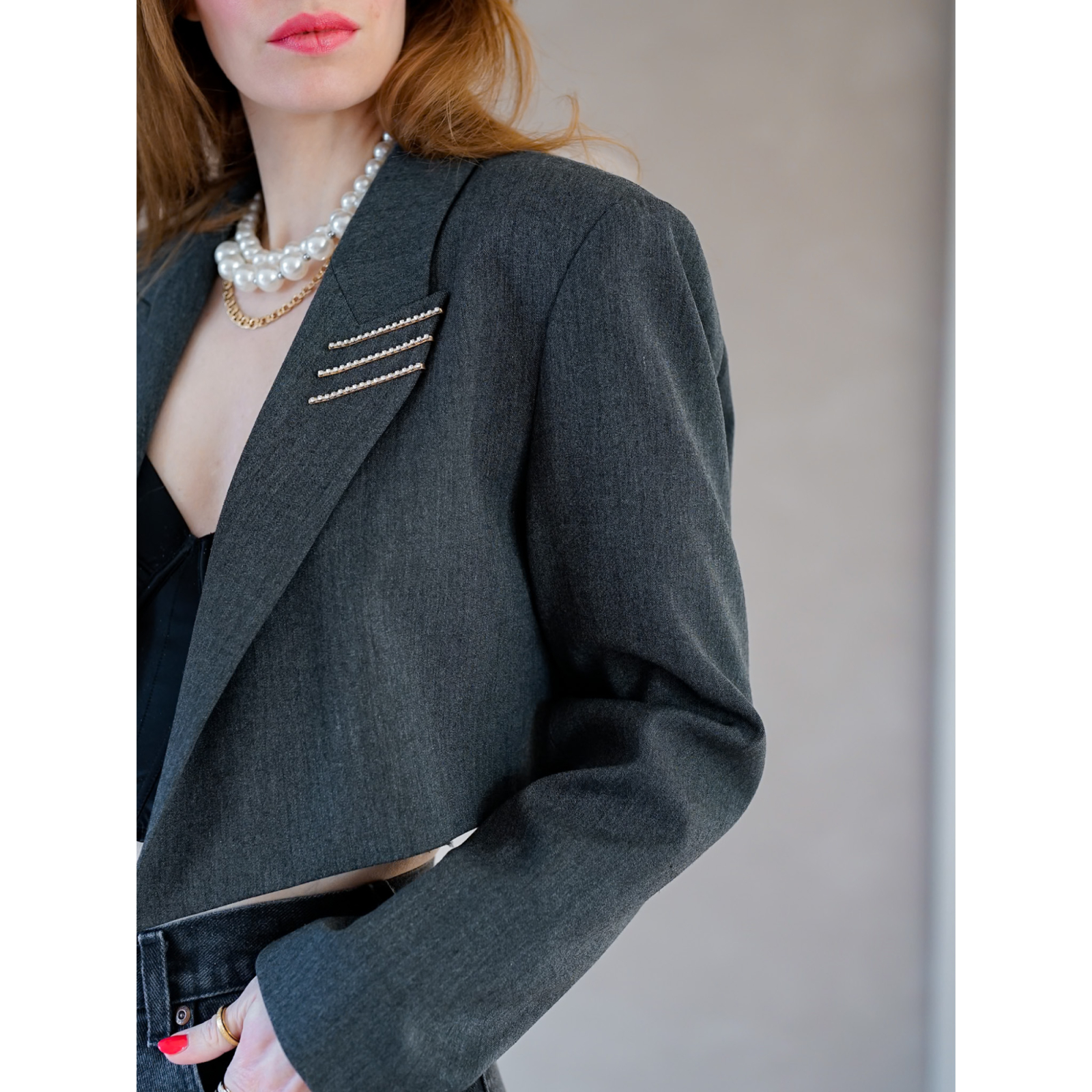 Vintage Vibes KORT GRÅ BLAZER MED SIMILISTEN!