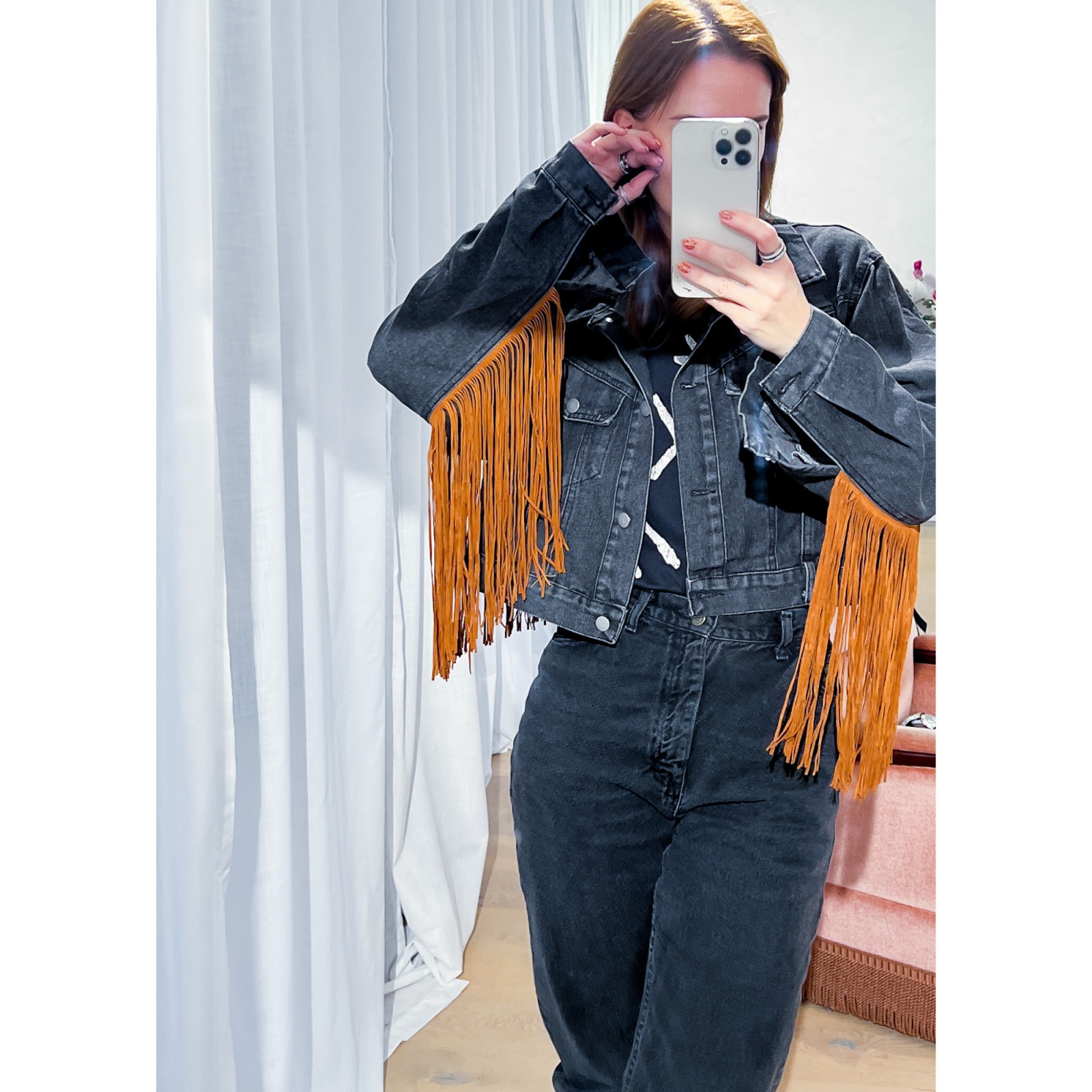 Vintage Vibes - kort sort denim jakke med frynser – no. 076