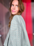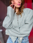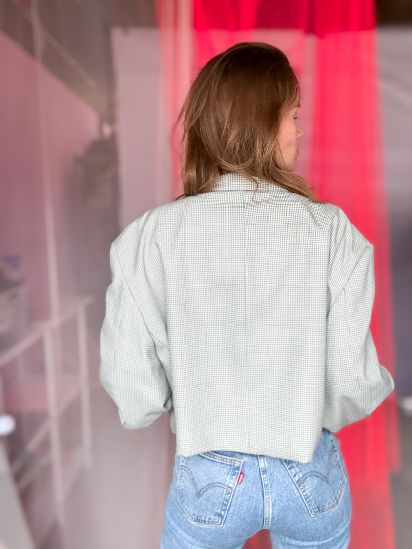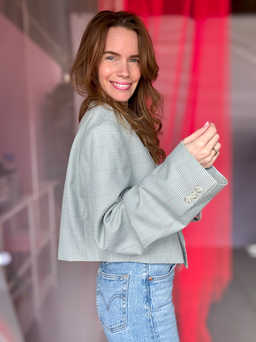 Vintage Vibes Kort Ternet Blazer – No 197 fra LÉ MOSCH, smuk skulpturel kort blazer med grønne tern, sej kort blazer til dit personlige look,