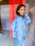 Vintage Vibes blå skjorte med flæse - No 188 fra LÉ MOSCH, Smuk og spændende kort blå skjorte, skjorte med flæse og lange ærmer,