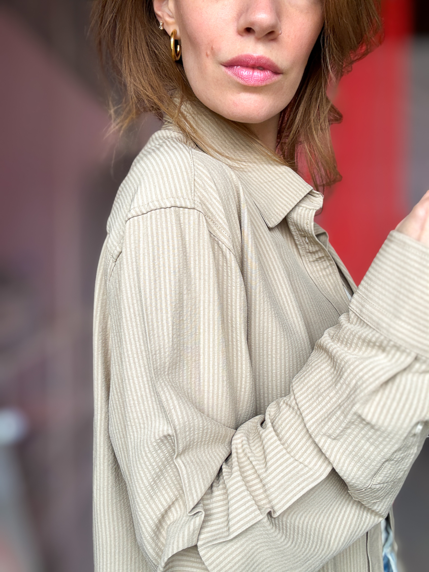 Forsiden / Tøj / Tøj / Vintage Vibes mørk beige skjorte med slidser - No 200
