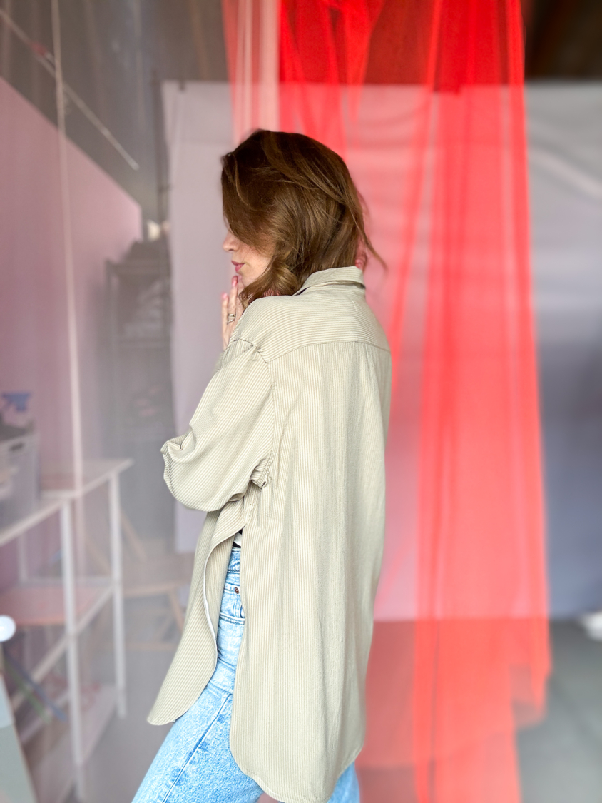 Vintage Vibes mørk beige skjorte med slidser - No 200