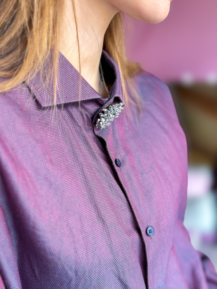 Vintage Vibes mørk lilla skjorte med flæse - No 192