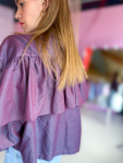 Vintage Vibes mørk lilla skjorte med flæse - No 192 fra LÉ MOSCH, smuk og feminin kort skjorte, skjorte med flæse og lange ærmer,