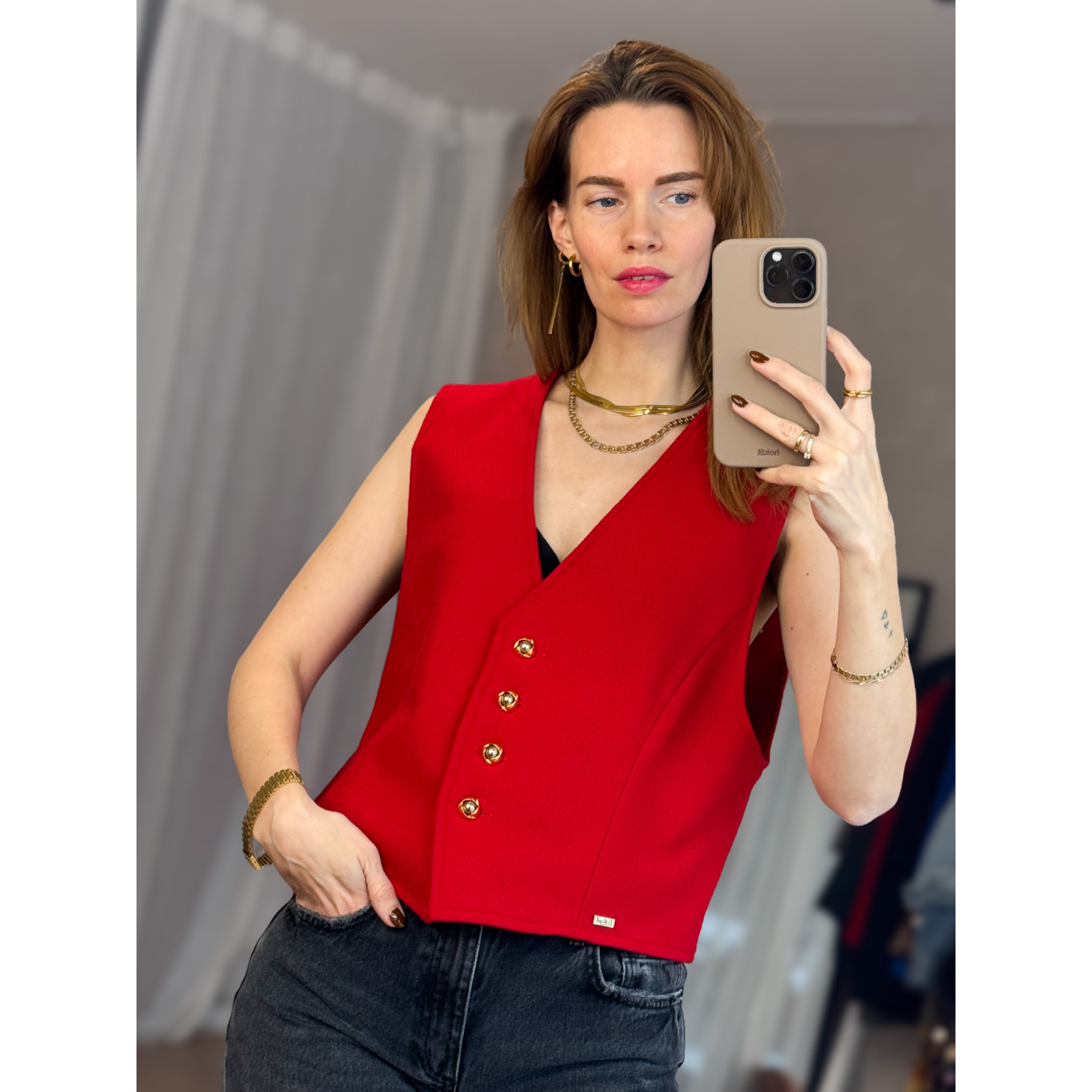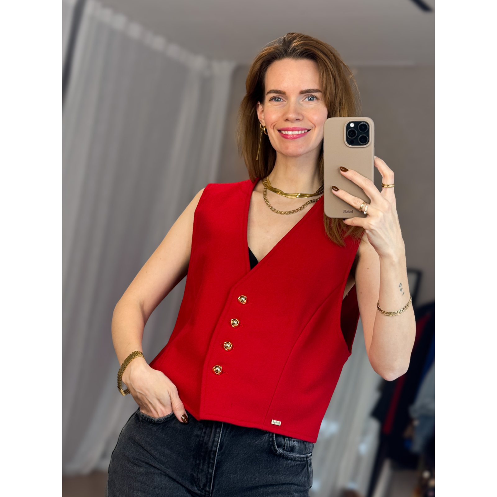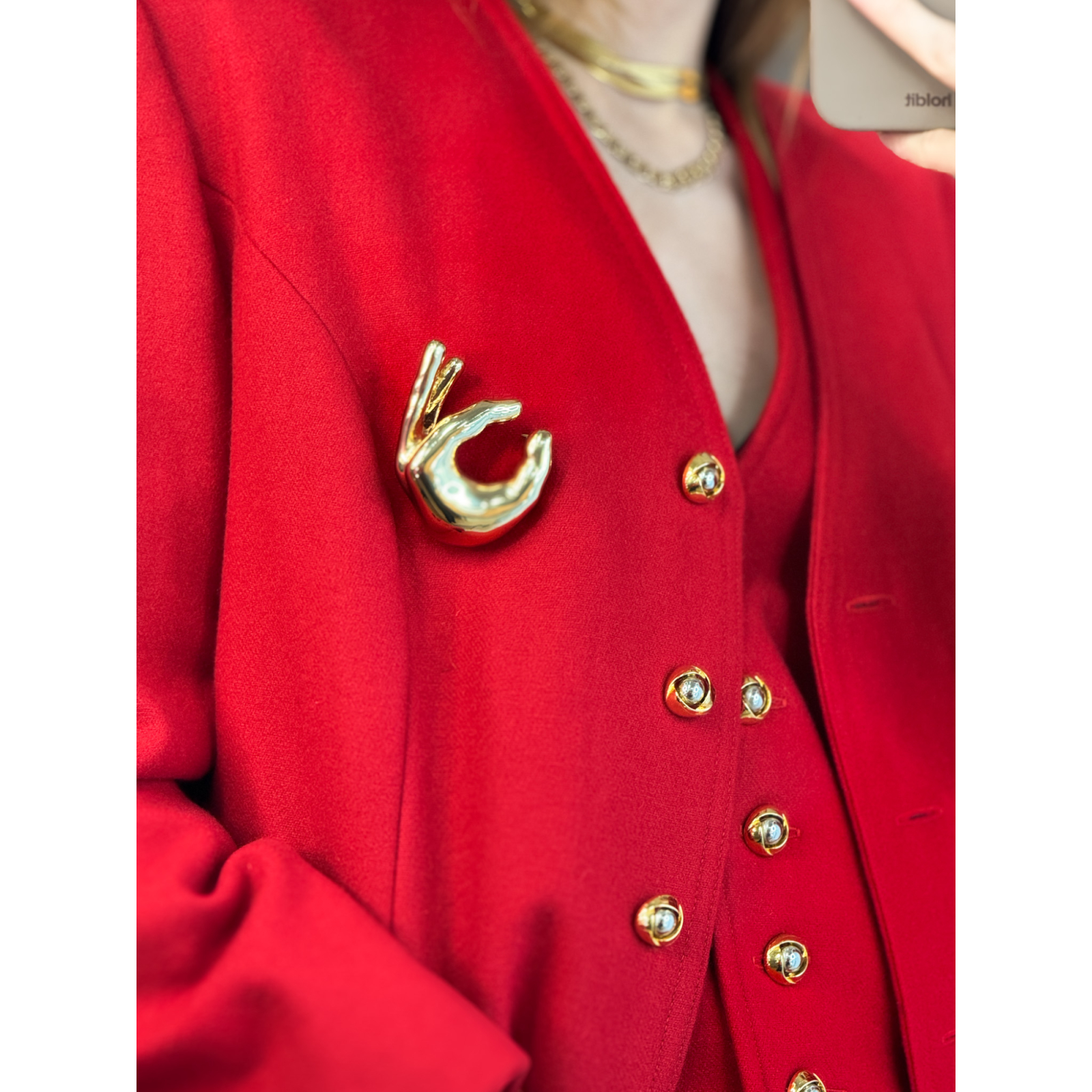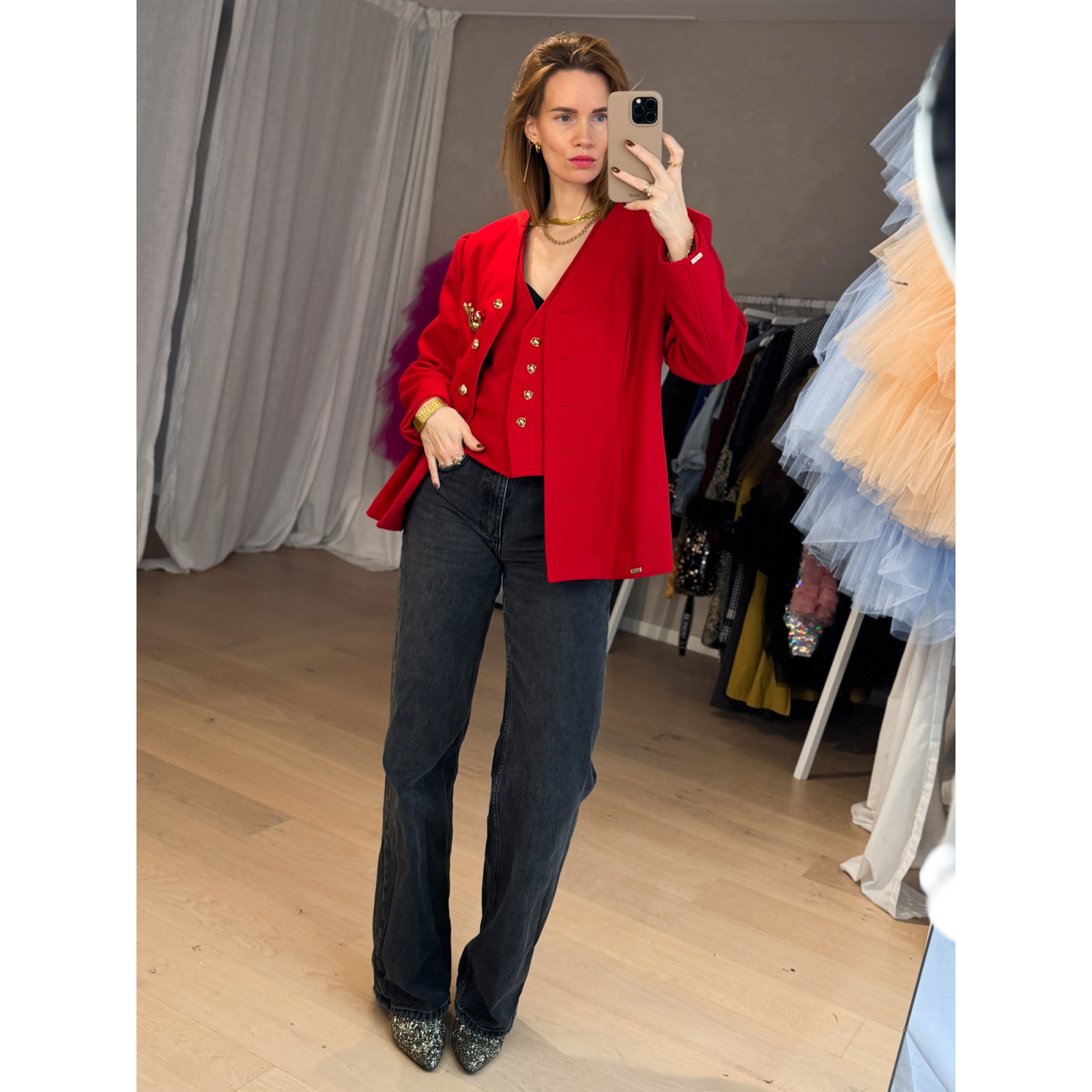 Vintage Vibes - unik rødt sæt med jakke og vest i 100% uld!