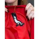 ✔ Pyntet med fine gyldne knapper og emoji-brochen.