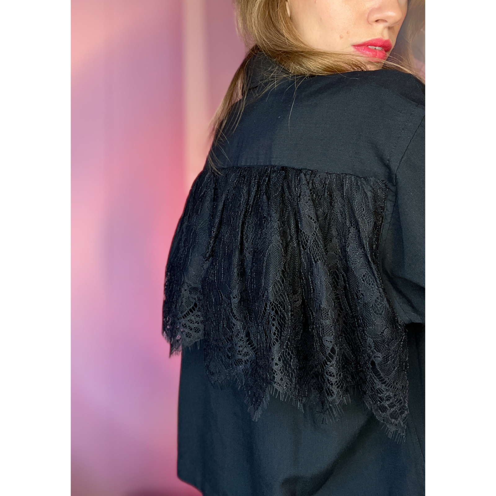 Varenr.: 3258550 | GTIN 5714441013554Unik skjorte med blonde-flæse bagpå - ONE SIZE.