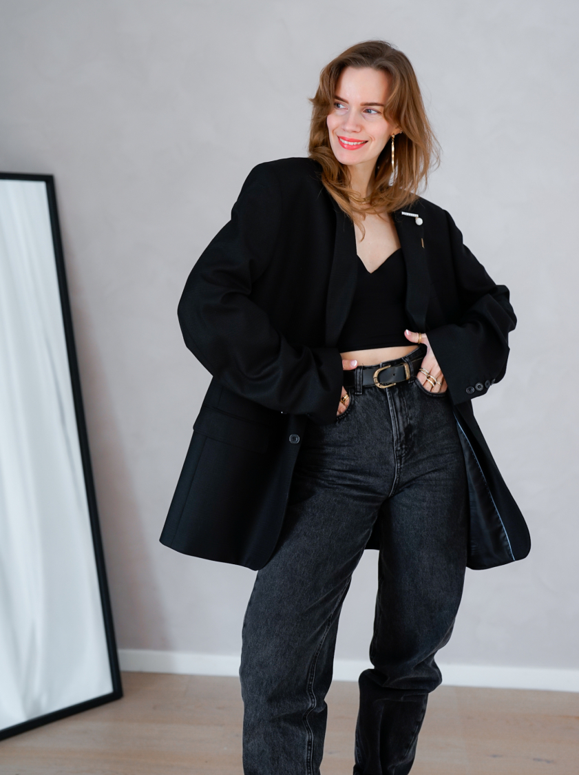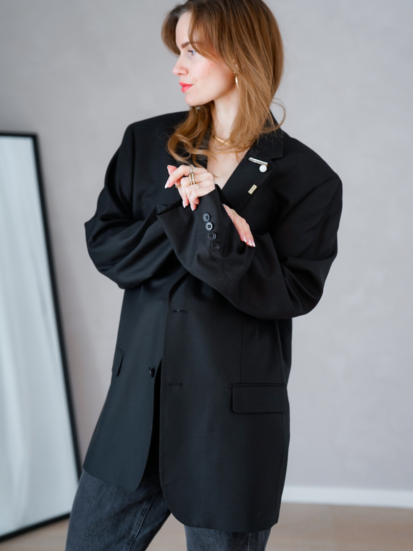 Vintage Vibes sort blazer med broche – No 156