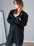 Skøn sort blazer, pyntet med broche.