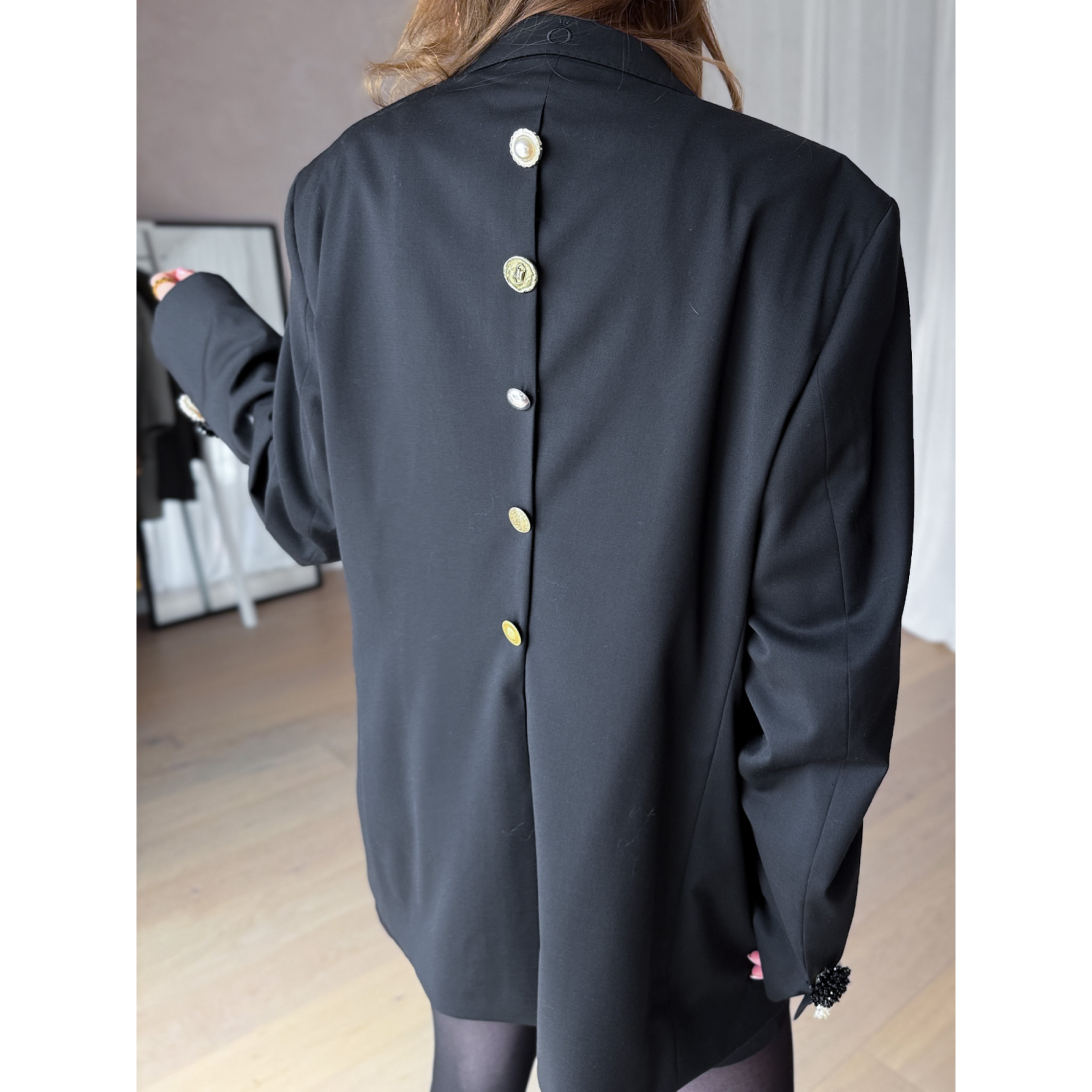 Vintage Vibes Sort Blazer med knapper på ryggen – No. 131: