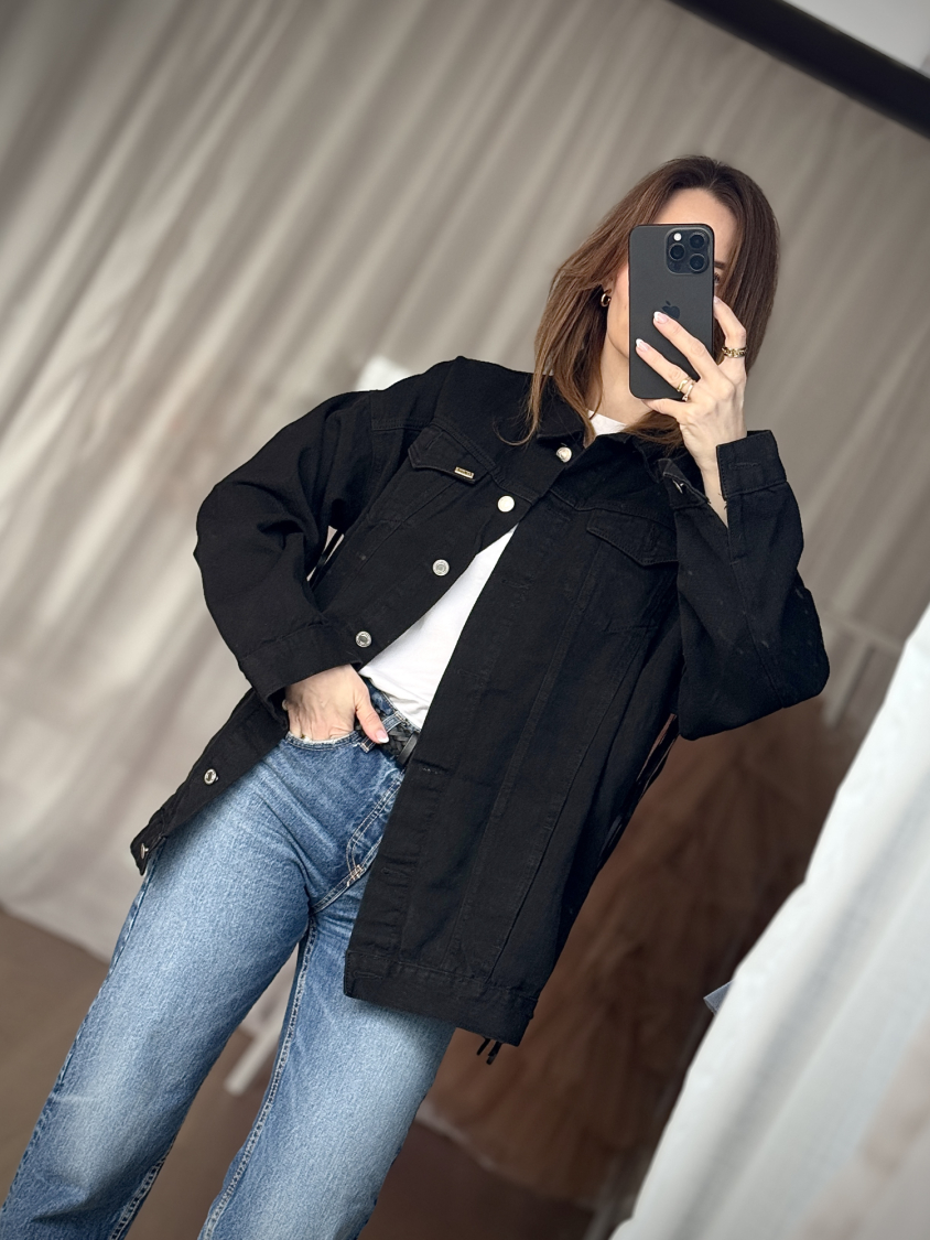 Vintage Vibes sort denim jakke med frynser – no 170