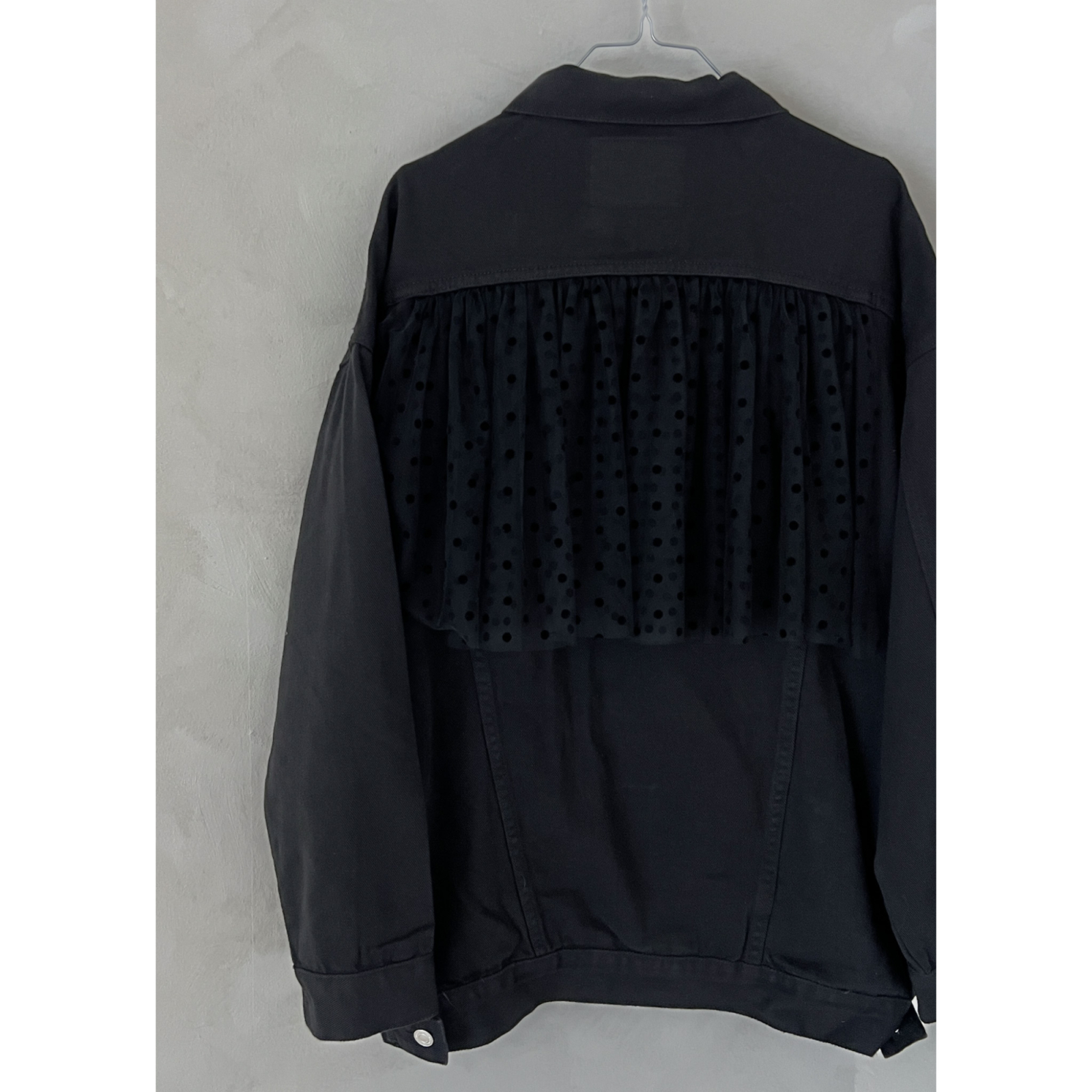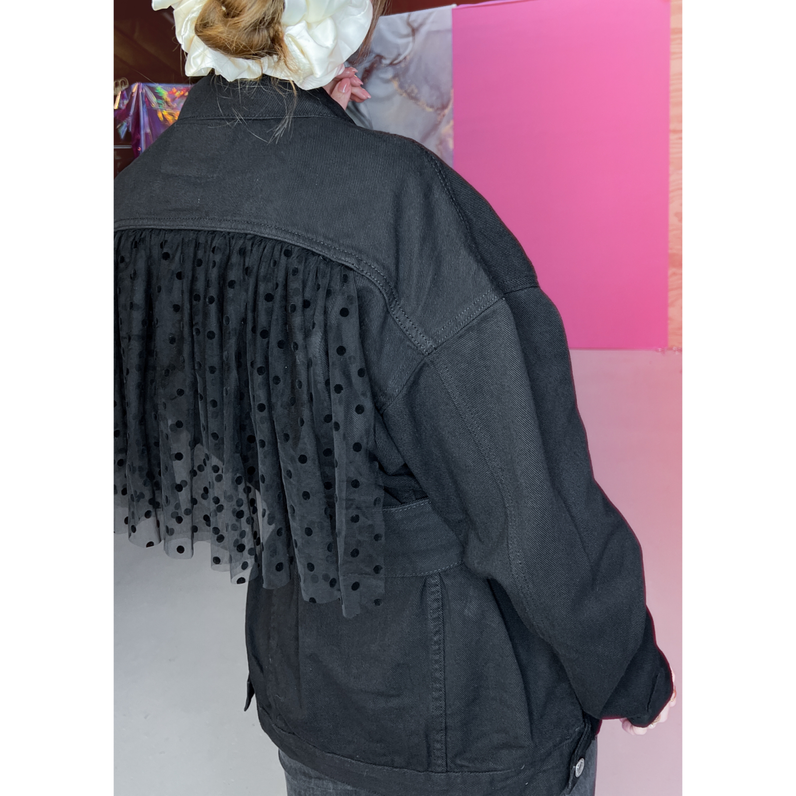 Vintage Vibes Sort Denim Jakke med prikket tyl!