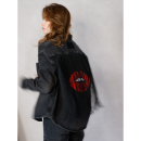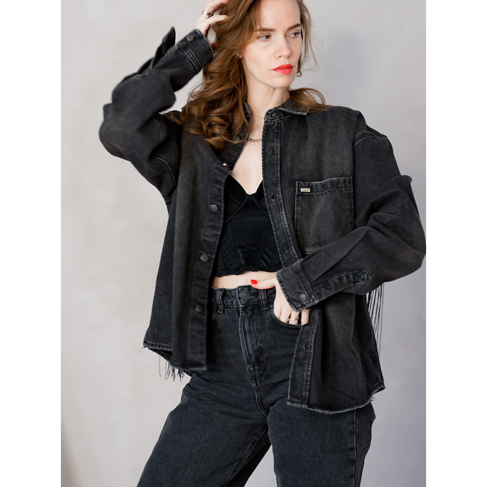 Vintage Vibes - sort denimskjorte med patch og frynser.