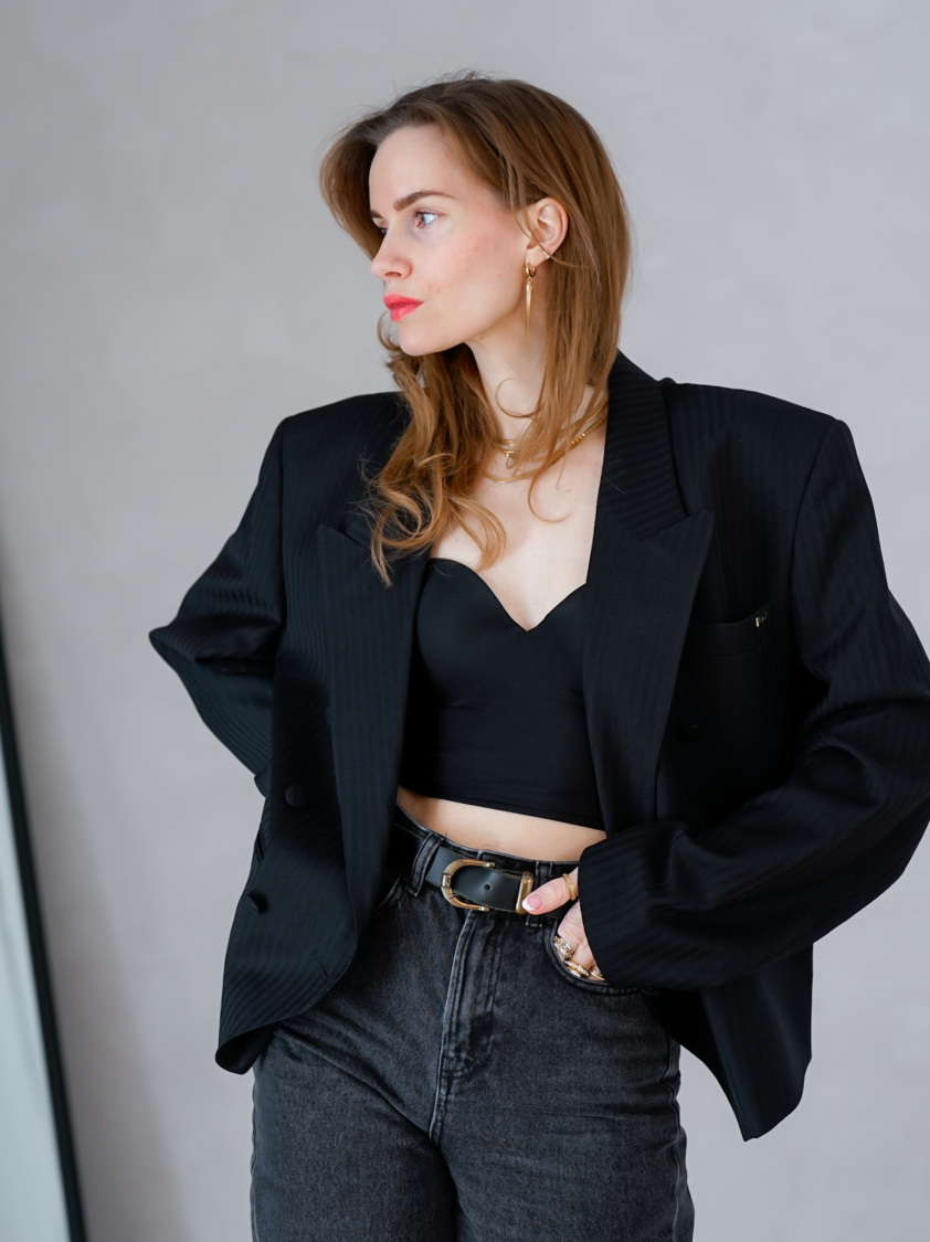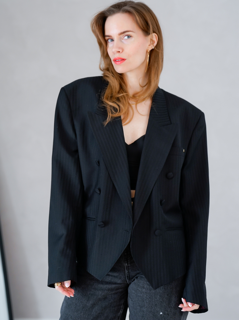 Vintage Vibes sort dobbeltradet blazer – No 153